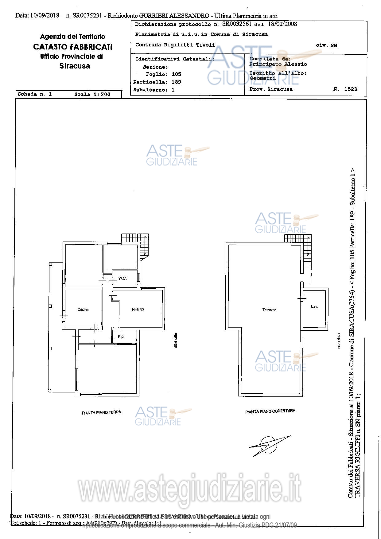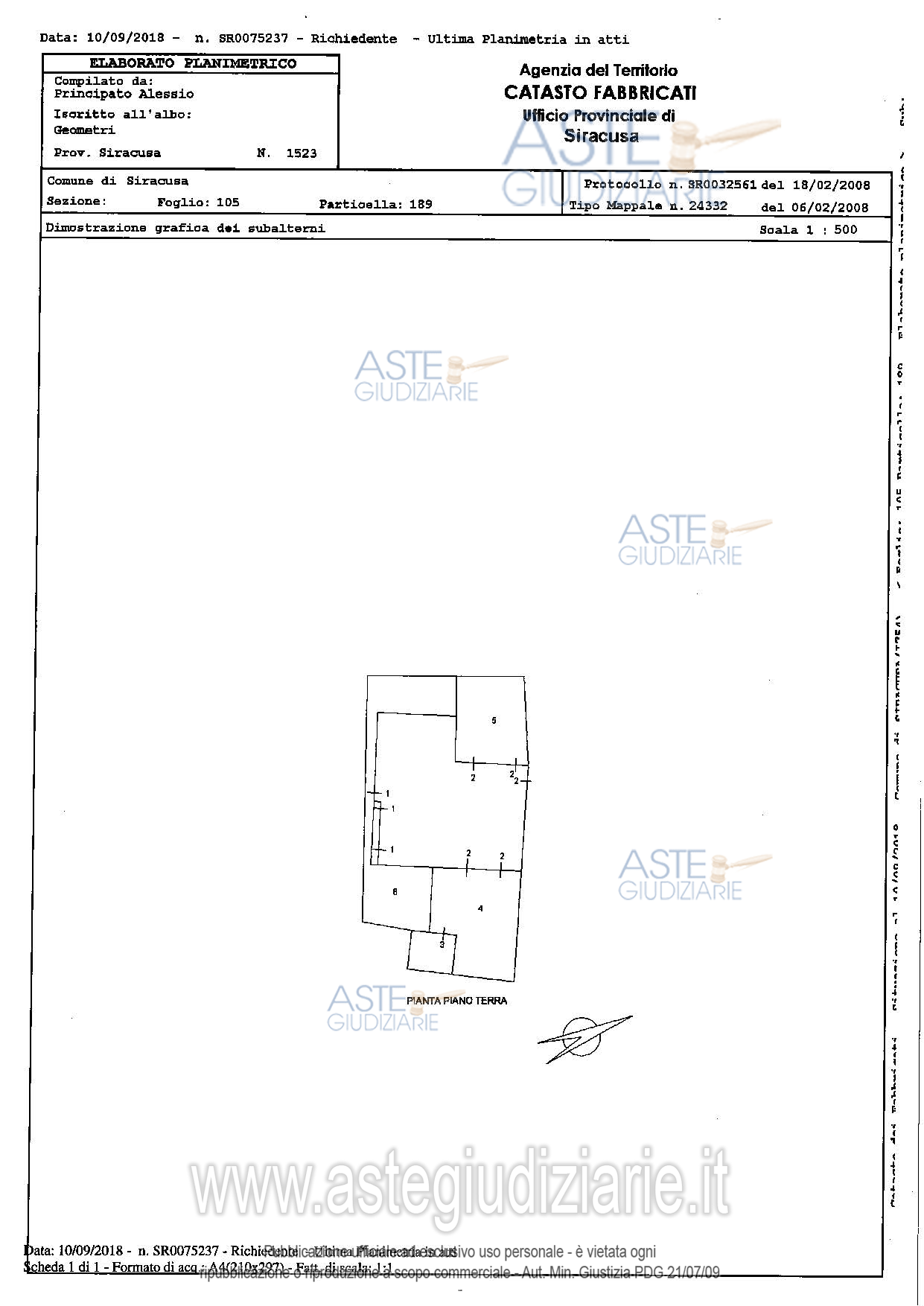 Vendita all'asta Senza incanto, con gara telematica sincrona mista - LOTTO 2: Piena proprietà del villino, ad un solo livello fuori terra, sito in Siracusa, c.da Rigiliffi, via per Canicattini n. 18, con terrazza piana di copertura accessibile da scalaesterna e corte di pertinenza. In CF al f. 105, p.lla 189 sub. 1, piano terra, cat. A/3, cl. 3^, 7 vani, R.C. €. 650,74, e p.lla 189 sub. 6. Prezzo base € 28.476,56 (offerta minima € 21.357,42). Data vendita 22/05/2026 ore 13:00. Giudice Concita Cultrera. Professionista delegato alla vendita Avv. Carlo Carpinteri - Email "avvocato.carpinteri@gmail.com"; Tel. 093139555. Custode Giudiziario Avv. Carlo Carpinteri - Email "avvocato.carpinteri@gmail.com"; Tel. 093139555. Rif. Tribunale di Siracusa - Esecuzione immobiliare post legge 80 n. 320/2007