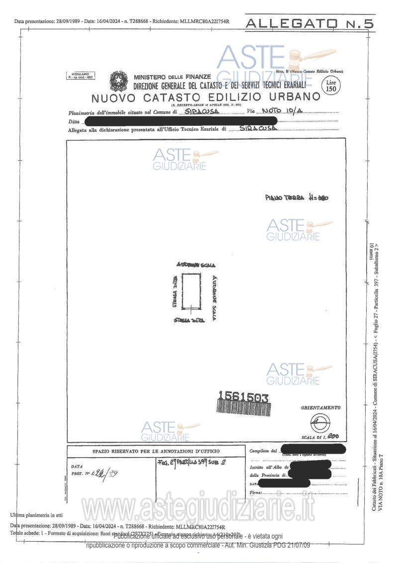 Vendita all'asta Senza incanto, con gara telematica sincrona mista - LOTTO 2: Piena ed intera proprietà di appartamento in Siracusa, Via Noto n. 8, Pal. B, p. 4, int. 13, in NCEU al foglio 27, p.lla 397 sub 35, cat. A/3, cl. 3, consistenza vani 7,5, superficie catastale totale mq 154-totale escluse aree scoperte mq 146, R.C. € 697,22, Via Noto n. 10-10/A, interno 13, piano 4, e di garage in Siracusa, Via Noto n. 8, Pal. B, p. t., int. 24, in NCEU al fg 27, p.lla 397 sub 2, cat. C/6, cl. 3, consistenza mq15, superficie catastale totale mq 19, R.C. € 77,47, Via Noto n. 10/A, piano T. Prezzo base € 139.650,00 (offerta minima € 104.737,50). Data vendita 19/12/2025 ore 09:00. Giudice Maria Cristina Di Stazio. Professionista delegato alla vendita Avv. Laura Panigada - Email "avvocatolpanigada@gmail.com"; Tel. 093136588. Custode Giudiziario Avv. Laura Panigada - Email "avvocatolpanigada@gmail.com"; Tel. 093136588. Rif. Tribunale di Siracusa - Esecuzione immobiliare post legge 80 n. 2/2023