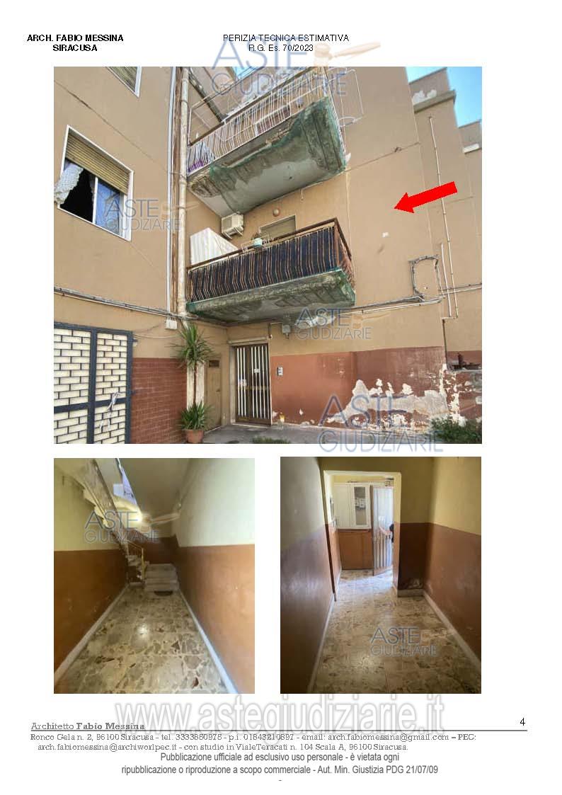 Vendita all'asta Senza incanto, con gara telematica sincrona mista - LOTTO UNICO: Appartamento in Siracusa Via Zappalà,4 , scala A piano primo Int. 1 al NCEU al foglio 43 p.lla 167 sub 8, di 105 mq. Cat. A/3. Prezzo base € 56.250,00 (offerta minima € 42.187,50). Data vendita 11/12/2025 ore 11:00. Professionista delegato alla vendita Avv. Antonio Messina - Email "antoniomessina097@gmail.com"; Cell. 3397961479; Tel. 093168236. Custode Giudiziario Avv. Antonio Messina - Email "antoniomessina097@gmail.com"; Cell. 3397961479; Tel. 093168236. Rif. Tribunale di Siracusa - Esecuzione immobiliare post legge 80 n. 70/2023