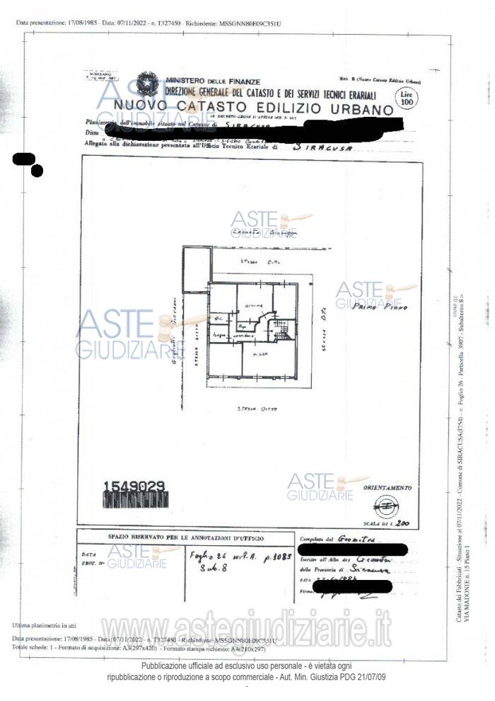 Vendita all'asta Senza incanto, con gara telematica sincrona mista - LOTTO UNICO: Lotto 3: 1/1 della proprietà dell’appartamento sito in Siracusa in via Madonie n. 15/17, piano primo, censito al C.F. del predetto Comune, al fg. 26, p.lla 3907, sub. 8 (già fg. 26, p.lla 1085, sub. 8), cat. A/2, classe 2, consistenza 7,5 vani, superficie catastale mq. 180, r.c. € 948,99. Prezzo base € 80.803,12 (offerta minima € 60.602,34). Data vendita 03/02/2026 ore 10:00. Professionista delegato alla vendita Avv. Monica Benedetto - Email "avvmonicabenedetto@hotmail.com"; Cell. 3391109753; Tel. 09311560608. Custode Giudiziario Avv. Monica Benedetto - Email "avvmonicabenedetto@hotmail.com"; Cell. 3391109753; Tel. 09311560608. Rif. Tribunale di Siracusa - Esecuzione immobiliare post legge 80 n. 149/2022