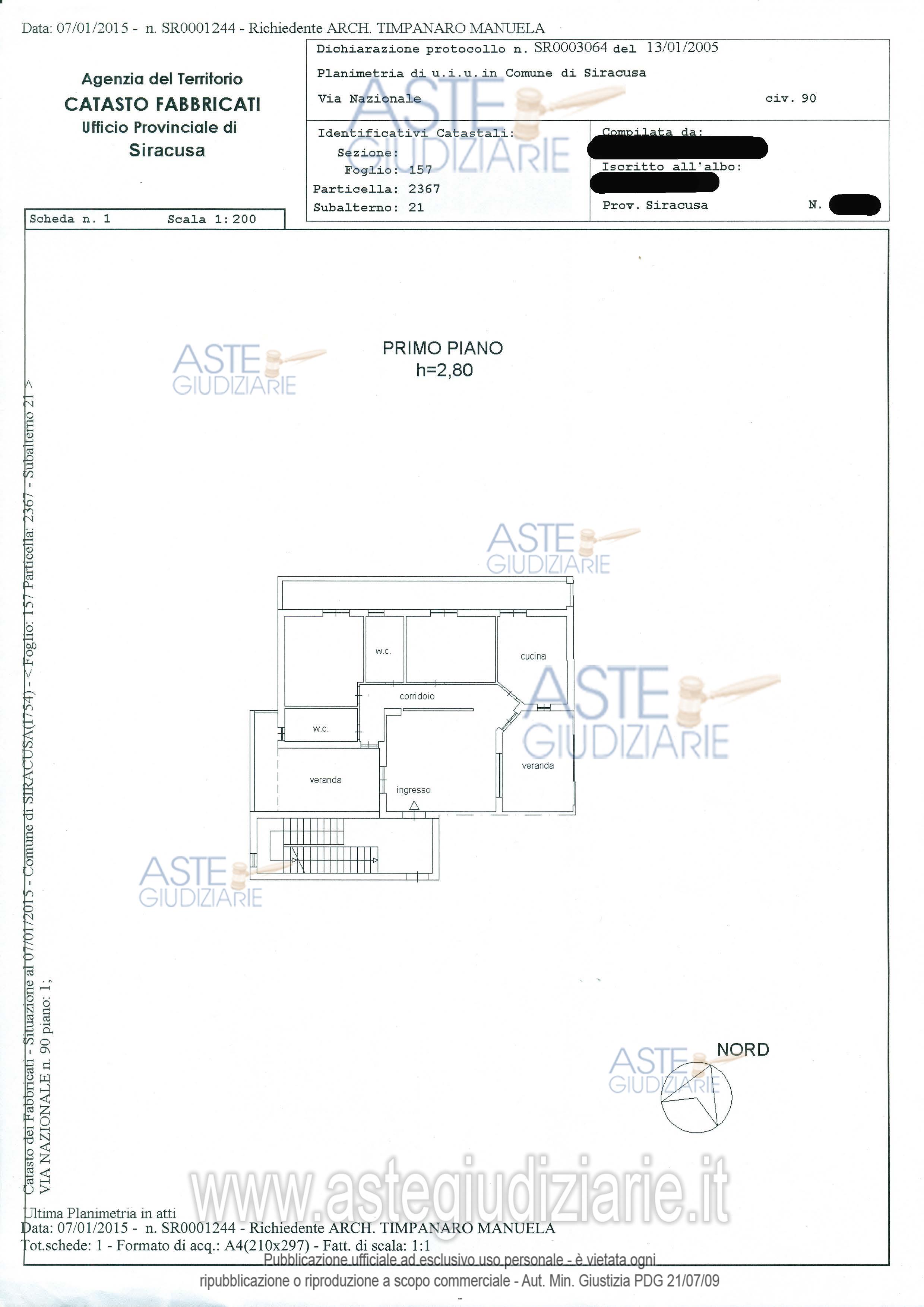 Vendita all'asta Senza incanto, con gara telematica sincrona mista - LOTTO 1: Piena ed intera proprietà di appartamento in Siracusa, Frazione Cassibile, Via Nazionale n. 92, p. 1, scala B, int. 2, in N.C.E.U. al foglio 157, p.lla 2367 sub 21, cat. A/2, cl. U, consistenza vani 5,5, superficie catastale totale mq. 106-totale escluse aree scoperte mq. 96, R.C. € 553,90, Via Nazionale n. 90, piano 1, Classe Energetica “E”, giusta attestato di prestazione energetica del 10.03.2015 a firma dell’esperto stimatore. Prezzo base € 91.409,26 (offerta minima € 68.556,94). Data vendita 03/12/2025 ore 11:00. Giudice Maria Cristina Di Stazio. Professionista delegato alla vendita Avv. Paolo Munafò - Email "avv.paolomunafo@mbcg.it"; Cell. 3387429274; Tel. 09311562510. Custode Giudiziario Avv. Paolo Munafò - Email "avv.paolomunafo@mbcg.it"; Cell. 3387429274; Tel. 09311562510. Rif. Tribunale di Siracusa - Esecuzione immobiliare post legge 80 n. 23/2014