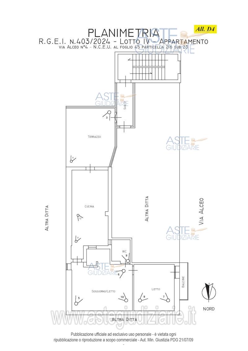 Vendita all'asta Senza incanto, con gara telematica sincrona mista - LOTTO 4: Piena proprietà dell’appartamento sito a Siracusa (SR), Via Alceo n. 4 censito al N.C.E.U. del Comune di Siracusa al foglio 45, particella 216, sub 23, categoria A/3, classe 3, consistenza 3 vani, rendita € 278,89. Prezzo base € 42.750,00 (offerta minima € 32.062,50). Data vendita 06/05/2026 ore 09:00. Giudice Concita Cultrera. Professionista delegato alla vendita Dott. Alessandro Abbruzzo - Email "alessandro.abbruzzo@gmail.com"; Tel. 0931464088. Custode Giudiziario Dott. Alessandro Abbruzzo - Email "alessandro.abbruzzo@gmail.com"; Tel. 0931464088. Rif. Tribunale di Siracusa - Esecuzione immobiliare post legge 80 n. 403/2024