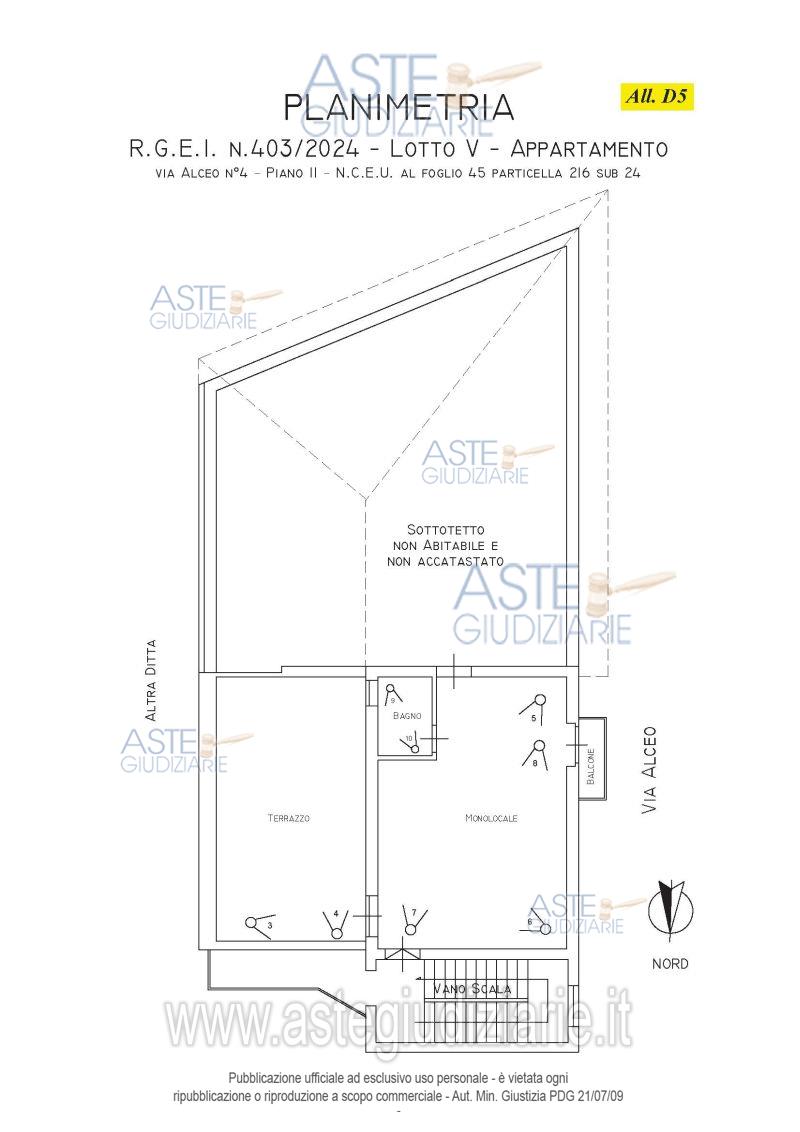 Vendita all'asta Senza incanto, con gara telematica sincrona mista - LOTTO 5: Piena proprietà dell’appartamento sito a Siracusa (SR), Via Alceo n. 4 censito al N.C.E.U. del Comune di Siracusa al foglio 45, particella 216, sub 24, categoria A/3, classe 3, consistenza 2 vani, rendita € 185,92. Prezzo base € 50.350,00 (offerta minima € 37.762,50). Data vendita 21/01/2026 ore 09:00. Giudice Concita Cultrera. Professionista delegato alla vendita Dott. Alessandro Abbruzzo - Email "alessandro.abbruzzo@gmail.com"; Tel. 0931464088. Custode Giudiziario Dott. Alessandro Abbruzzo - Email "alessandro.abbruzzo@gmail.com"; Tel. 0931464088. Rif. Tribunale di Siracusa - Esecuzione immobiliare post legge 80 n. 403/2024