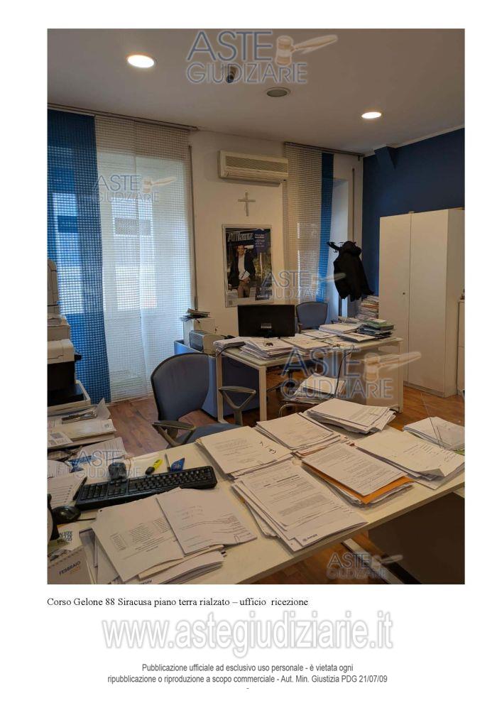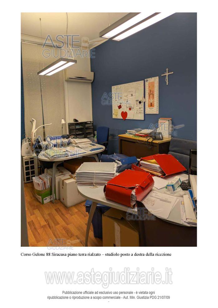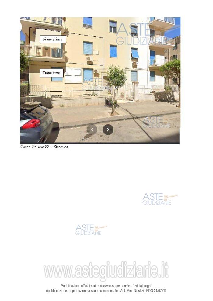 Vendita all'asta Senza incanto, con gara telematica sincrona mista - LOTTO 1: Piena proprietà appartamento destinato uso ufficio, in Siracusa Corso Gelone n. 88 piano terra rialzato, interno 2. In NCEU al foglio 45, particella 158, subalterno 2, Z.C.1, cat. A/10, classe 1, consistenza vani 5,5, superficie totale mq. 137, escluse aree scoperte mq.137, rendita €.1.164,61. Prezzo base € 104.100,00 (offerta minima € 78.075,00). Data vendita 19/03/2026 ore 09:00. Professionista delegato alla vendita Avv. Marco Rodante - Email "rodantemarco2@gmail.com"; Cell. 3385850497; Tel. 0931496001. Custode Giudiziario Avv. Marco Rodante - Email "rodantemarco2@gmail.com"; Cell. 3385850497; Tel. 0931496001. Rif. Tribunale di Siracusa - Esecuzione immobiliare post legge 80 n. 5/2025
