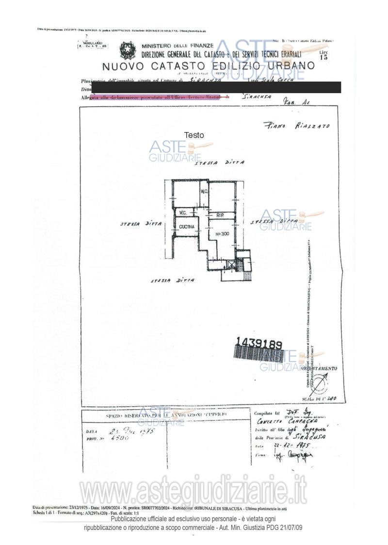 Vendita all'asta Senza incanto, con gara telematica sincrona mista - LOTTO UNICO: Intera proprietà appartamento al piano terra di vani 5,5 e di 148 mq. Prezzo base € 152.000,00 (offerta minima € 114.000,00). Data vendita 18/06/2026 ore 10:00. Professionista delegato alla vendita Avv. Alessandra Cerbino - Email "a.cerbino@studiocnrs.com"; Cell. 3479444165; Tel. 0950973586. Custode Giudiziario Avv. Alessandra Cerbino - Email "a.cerbino@studiocnrs.com"; Cell. 3479444165; Tel. 0950973586. Rif. Tribunale di Siracusa - Esecuzione immobiliare post legge 80 n. 189/2024