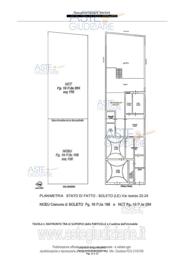 Vendita all'asta Senza incanto, con gara telematica asincrona - LOTTO UNICO: Quota di 1000/1000 di piena proprietà di abitazione unifamiliare di tipo economico, sita alla via Isonzo civ 22/24 in Soleto (LE) con annesso terreno di pertinenza. Prezzo base € 35.000,00 (offerta minima € 26.250,00). Data inizio operazioni di vendita: 14/04/2026 ore 11:00. Giudice Italo Mirko De Pasquale. Professionista delegato alla vendita Avv. Eleonora Monteforte - Email "monteforte.eleonoraordavvle@legalmail.it"; Tel. 3396050760. Custode Giudiziario Avv. Eleonora Monteforte - Email "monteforte.eleonoraordavvle@legalmail.it"; Tel. 3396050760. Rif. Tribunale di Lecce - Espropriazione immobiliare (cartabia) n. 354/2023