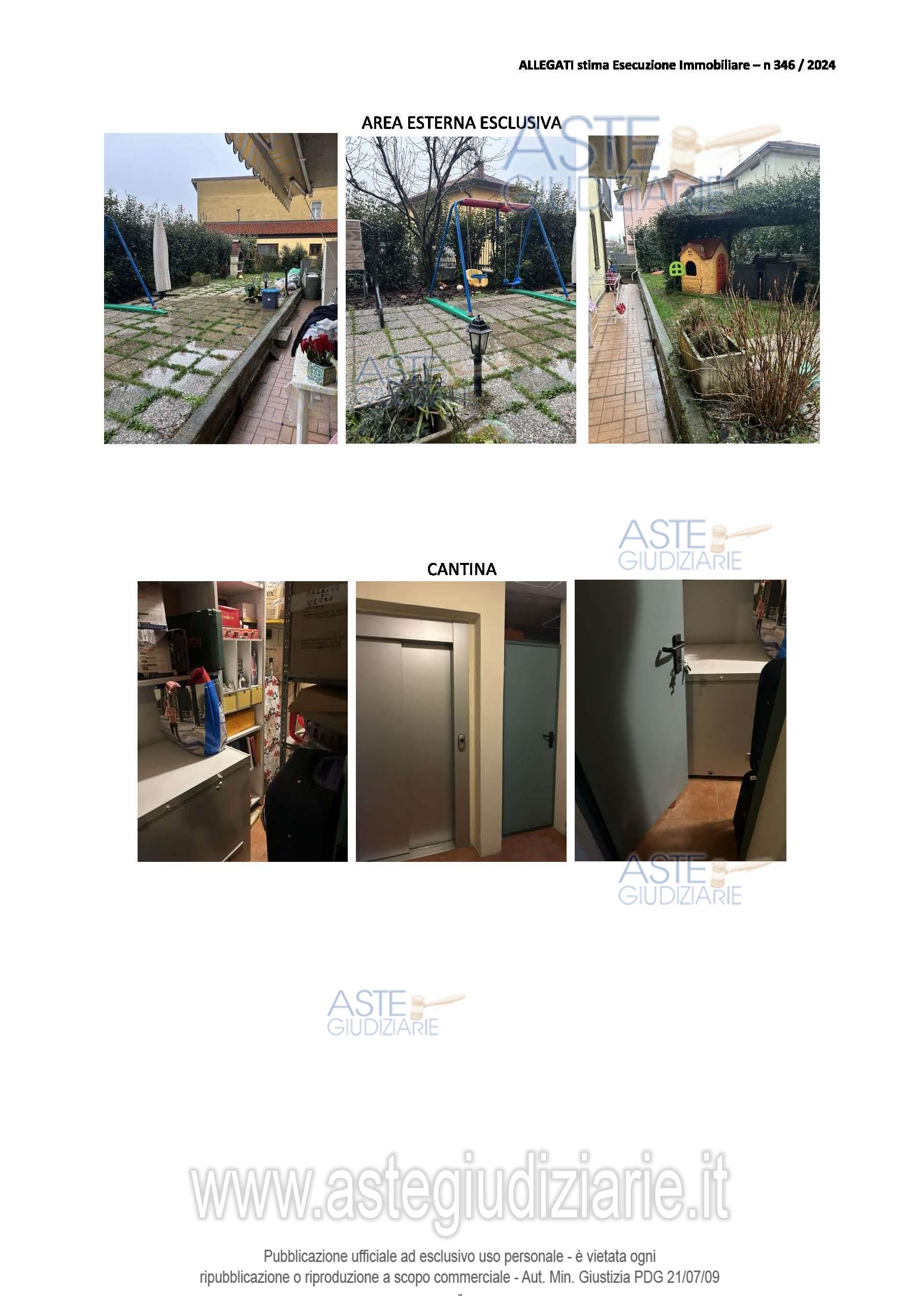Vendita all'asta Senza incanto, con gara telematica asincrona - LOTTO UNICO: Appartamento ubicato al piano terra, composto da ingresso,cucina, soggiorno, disimpegno, due camere e un bagno, con annessaarea esclusiva e cantina al piano interrato. Prezzo base € 94.030,20 (offerta minima € 70.522,65). Data inizio operazioni di vendita: 17/06/2026 ore 12:00. Giudice Vincenzo Domenico Scibetta. Professionista delegato alla vendita Not. Michela Serpico - Email "mserpico@notariato.it"; Tel. 035215248. Custode Giudiziario V.G.C. S.R.L. Guarnieri Roberta - Email "immobiliare@ivgbergamo.it"; Tel. 0350763005. Rif. Tribunale di Bergamo - Espropriazione immobiliare (cartabia) n. 346/2024
