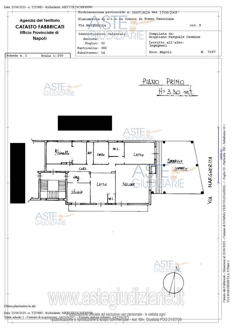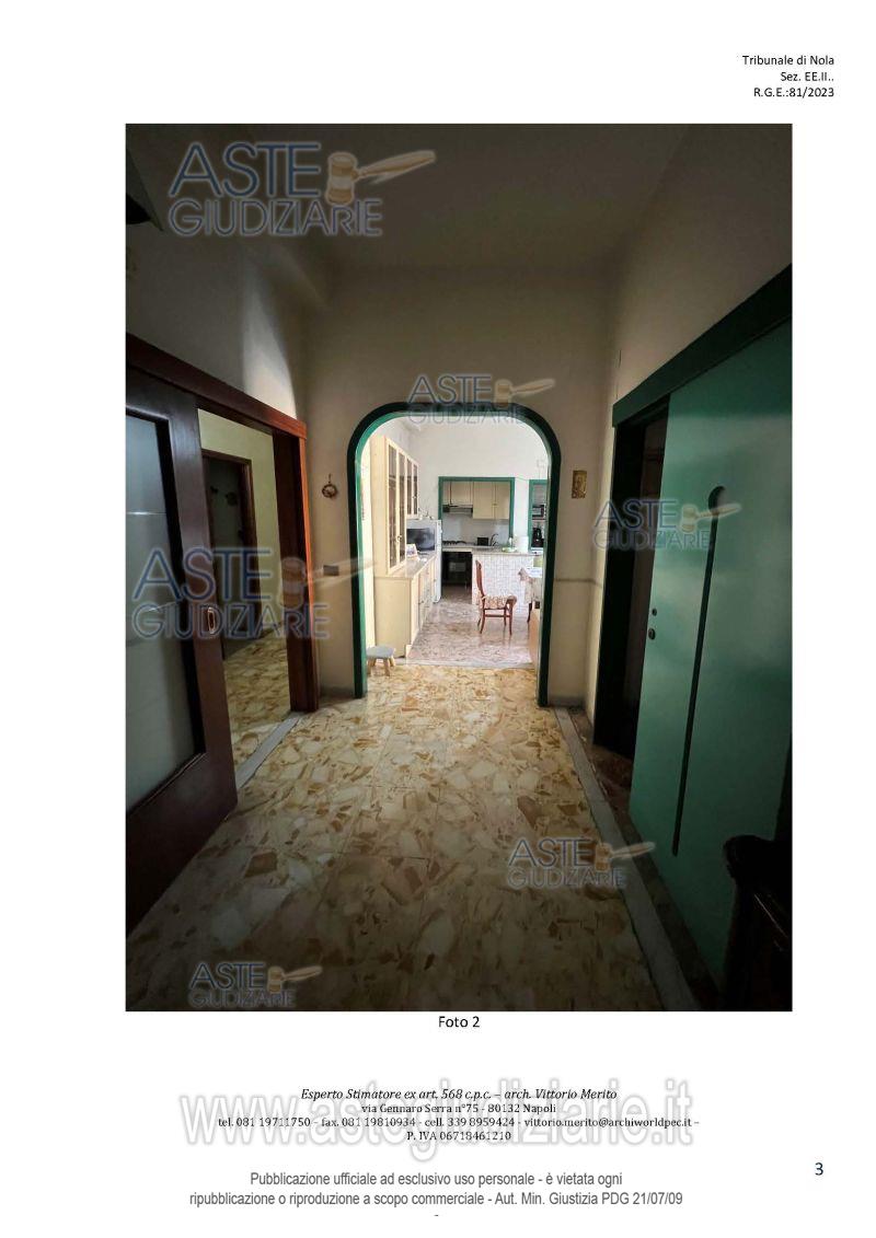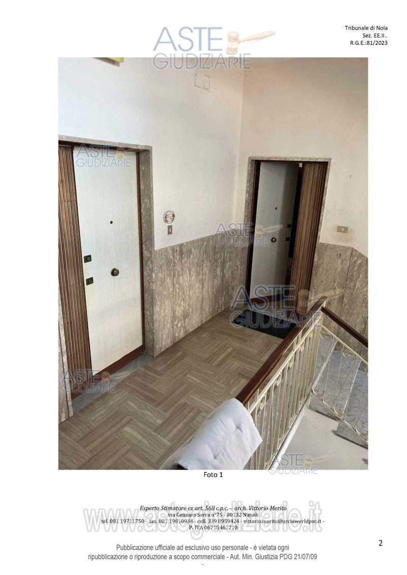 Vendita all'asta Senza incanto, con gara telematica asincrona - LOTTO UNICO: Appartamento uso civile abitazione, piano primo, Via s. Giovanni de Matha n. 9. Prezzo base € 176.172,00 (offerta minima € 132.200,00). Data inizio operazioni di vendita: 21/04/2026 ore 15:30. Professionista delegato alla vendita Not. Paolo Guida - Email "studiopguida@notariato.it"; Tel. 081418181. Custode Giudiziario Not. Paolo Guida - Email "studiopguida@notariato.it"; Tel. 081418181. Rif. Tribunale di Nola - Espropriazione immobiliare (cartabia) n. 81/2023