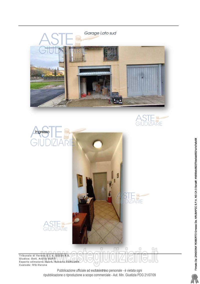 Vendita all'asta Senza incanto, con gara telematica sincrona mista - LOTTO UNICO: Piena proprietà di un appartamento ubicato al terzo ed ultimo piano di una palazzina di 6 alloggi, non dotata di ascensore e costituita in condominio, con annessa cantina ubicata al piano interrato e autorimessa pertinenziale al pian terreno; libero. Prezzo base € 135.000,00 (offerta minima € 101.250,00). Data vendita 25/02/2026 ore 09:30. Giudice Francesco Fontana. Professionista delegato alla vendita Avv. Nicola Sordi - Email "segreteria@studiolegalesordi.it"; Tel. 045590819. Custode Giudiziario Srl Società Vegi - Email "visiteimmobili@ivgverona.it"; Tel. 0459813484. Rif. Tribunale di Verona - Espropriazione immobiliare (cartabia) n. 322/2024