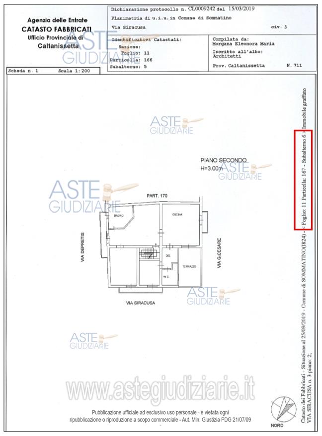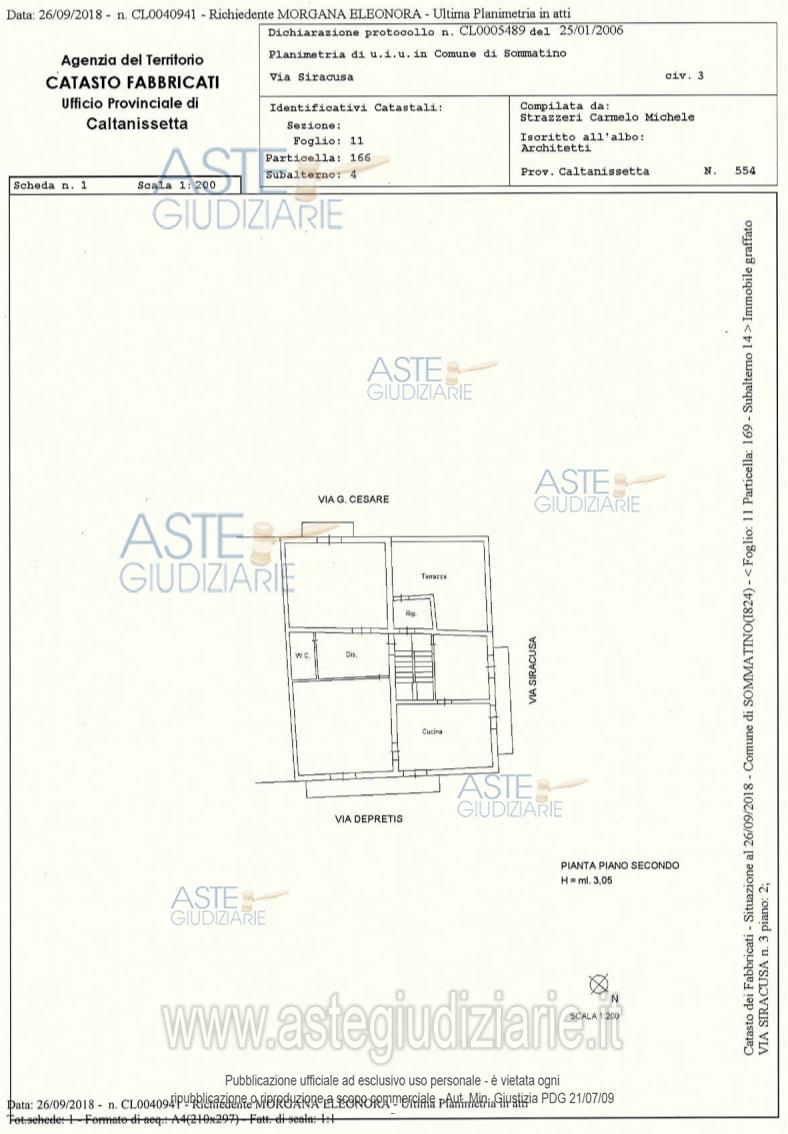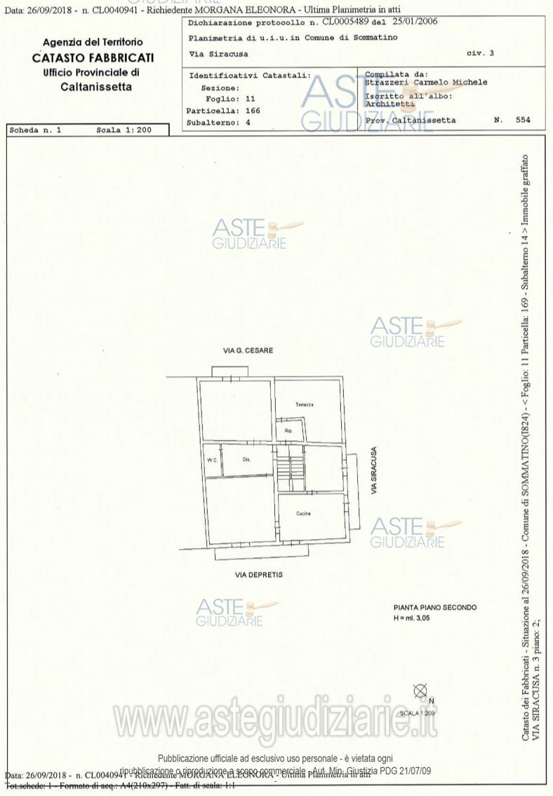 Vendita in attesa dell'emissione del nuovo bando d'asta. LOTTO UNICO: Appartamento al piano secondo, con area sovrastante di sua pertinenza posta al piano terzodell'edificio, composto da un ingresso che immette direttamente nel vano salone, due camereda letto, una cucina, un bagno, un doppio servizio e un terrazzo. Ultimo prezzo base € 6.968,13 (offerta minima € 5.226,09). Professionista delegato alla vendita Avv. Rosalia Mariateresa Grande. Custode Giudiziario Avv. Rosalia Mariateresa Grande - Email "studiolegalegrande@alice.it"; Tel. 0934592244. Rif. Tribunale di Caltanissetta - Esecuzione immobiliare post legge 80 n. 2/2018