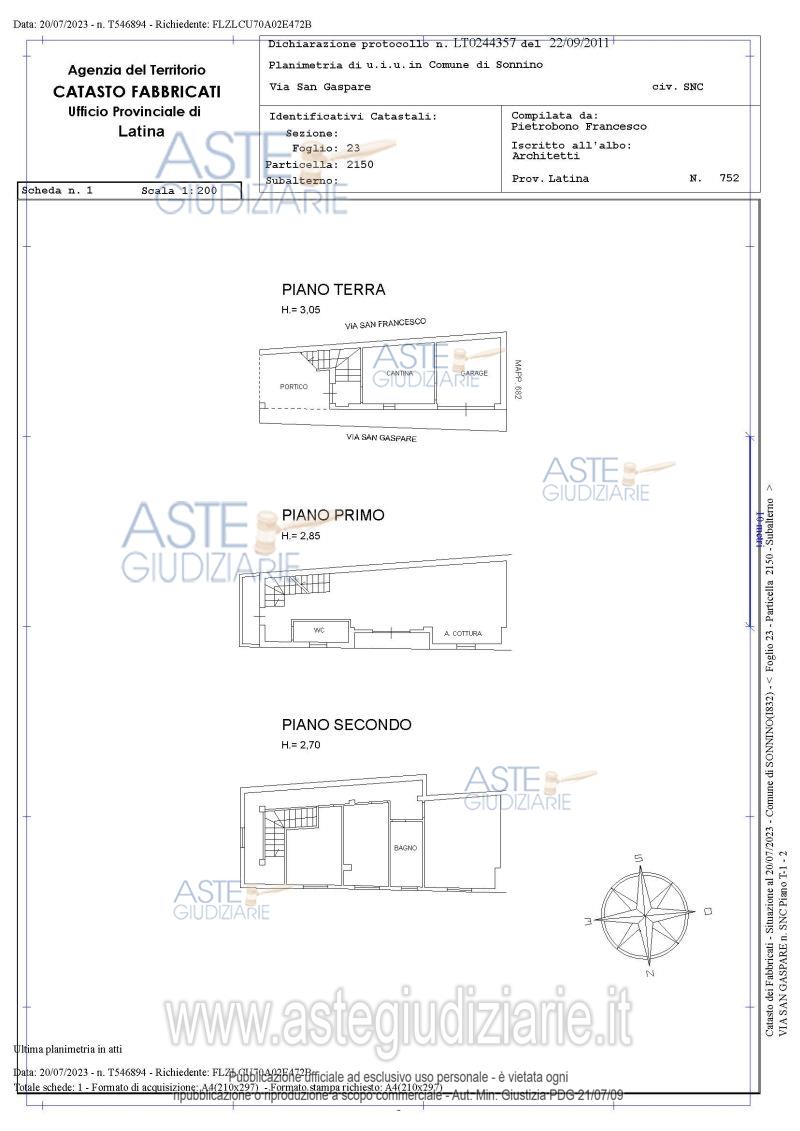 Vendita all'asta Senza incanto, con gara telematica asincrona - LOTTO UNICO: APPARTAMENTO, disposto su due livelli sovrastanti box e cantina e sito lungo la linea di costa dell’abitato a qualche centinaio di metri dalla piazza centrale,così suddiviso:PIANO TERRA: GARAGE E CANTINA PER 24.60 MQ CALPESTABILI OLTRE INGRESSO E ZONA PORTICATA; PIANO PRIMO: ZONA GIORNO PER 46.30 MQ CALPESTABILI, OLTRE DUE BALCONI PER 6.80 MQ;PIANO SECONDO: ZONA NOTTE PER 72.00 MQ CALPESTABILI.La superficie ad uso abitativo è di 118.30 mq. Prezzo base € 28.108,12 (offerta minima € 21.081,09). Data inizio operazioni di vendita: 25/11/2025 ore 10:00. Professionista delegato alla vendita Dott. Francesca Di Russo - Email "studiodirusso@libero.it"; Cell. 3200244014; Tel. 0773693350. Custode Giudiziario Dott. Francesca Di Russo - Email "studiodirusso@libero.it"; Cell. 3200244014; Tel. 0773693350. Rif. Tribunale di Latina - Esecuzione immobiliare post legge 80 n. 90/2022