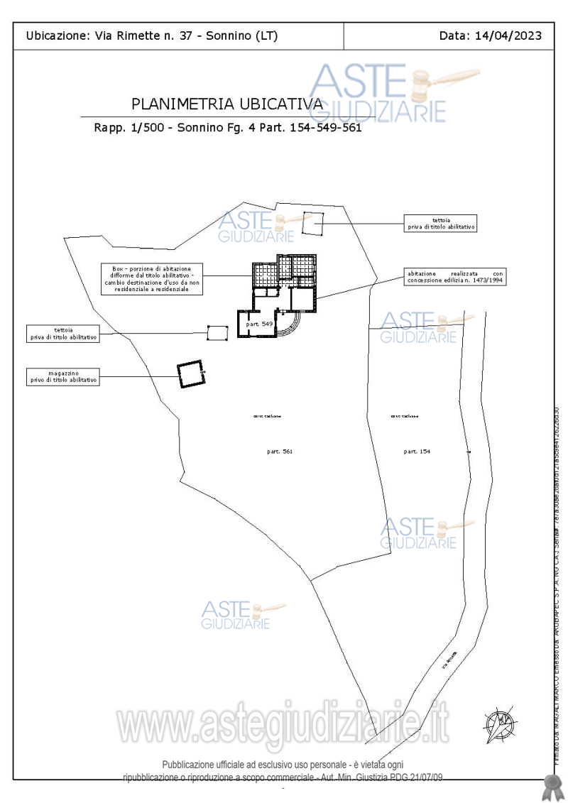 Vendita all'asta Senza incanto, con gara telematica asincrona - LOTTO UNICO: Diritto di enfiteusi (concedente Comune di Sonnino) del fabbricato in Comune di Sonnino (LT), adibito ad abitazione con corte esclusiva, gravato da livello in favore in favore del predetto Comune, posto al piano terra, con ingresso su Via Rimette. Prezzo base € 112.500,00 (offerta minima € 84.375,00). Data inizio operazioni di vendita: 21/04/2026 ore 16:00. Professionista delegato alla vendita Avv. Nicoletta Galeotto - Email "nicolettagaleotto@hotmail.com"; Tel. 07731769000. Rif. Tribunale di Latina - Contenzioso civile n. 5366/2023