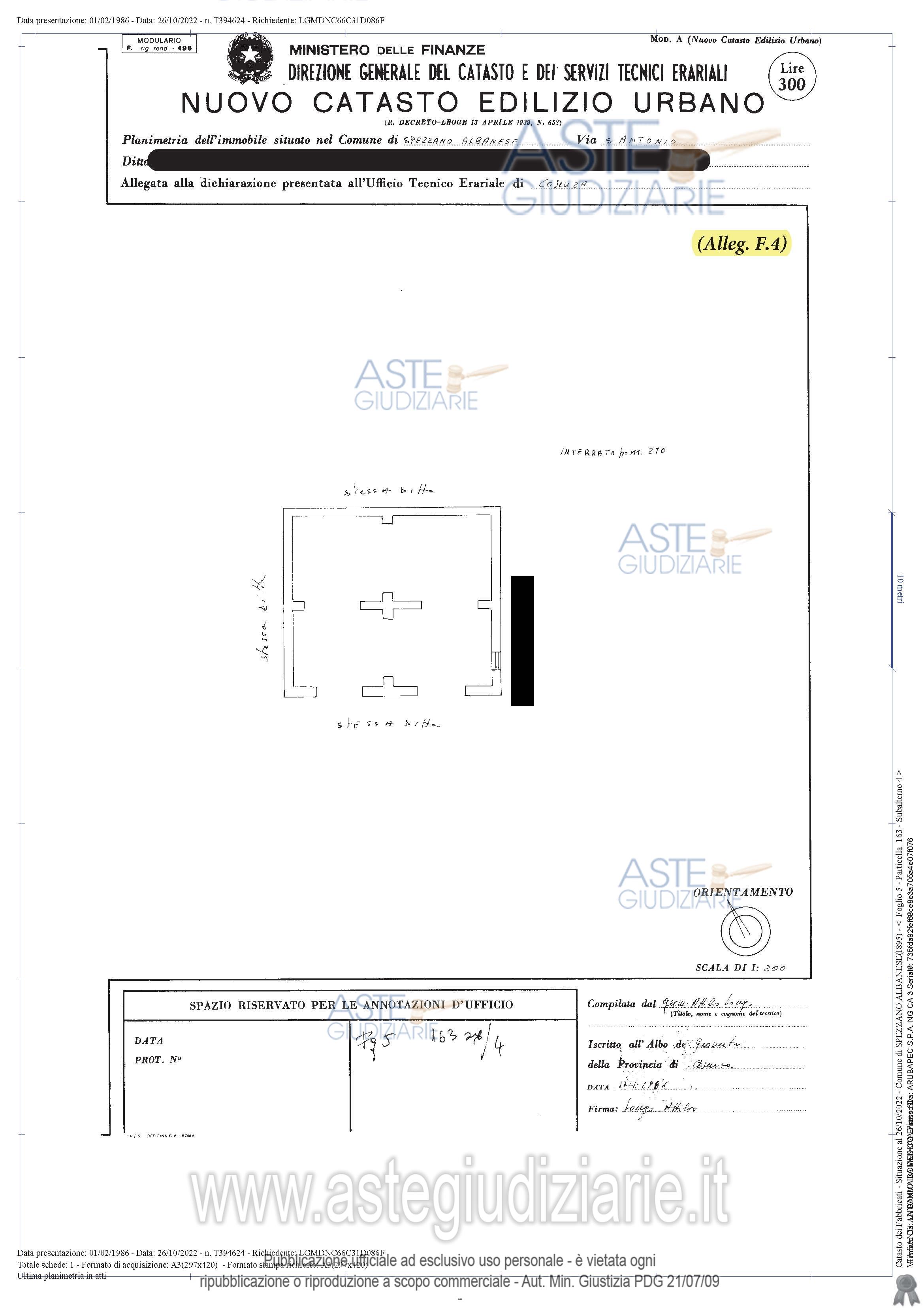 Vendita all'asta Senza incanto, con gara telematica sincrona - LOTTO UNICO: Intera palazzina di tre piani fuori terra oltre al piano seminterrato. Prezzo base € 31.763,00 (offerta minima € 23.822,25). Data vendita 20/04/2026 ore 16:30. Giudice Giuliana Gaudiano. Professionista delegato alla vendita Dott. Gianluca Tudda - Email "gianlucatudda@libero.it". Custode Giudiziario Dott. Gianluca Tudda - Email "gianlucatudda@libero.it". Rif. Tribunale di Castrovillari - Esecuzione immobiliare post legge 80 n. 48/2021