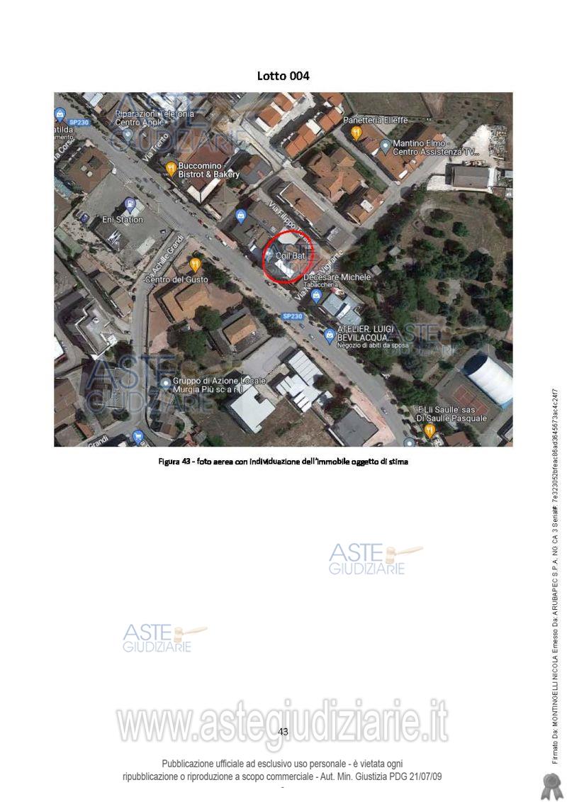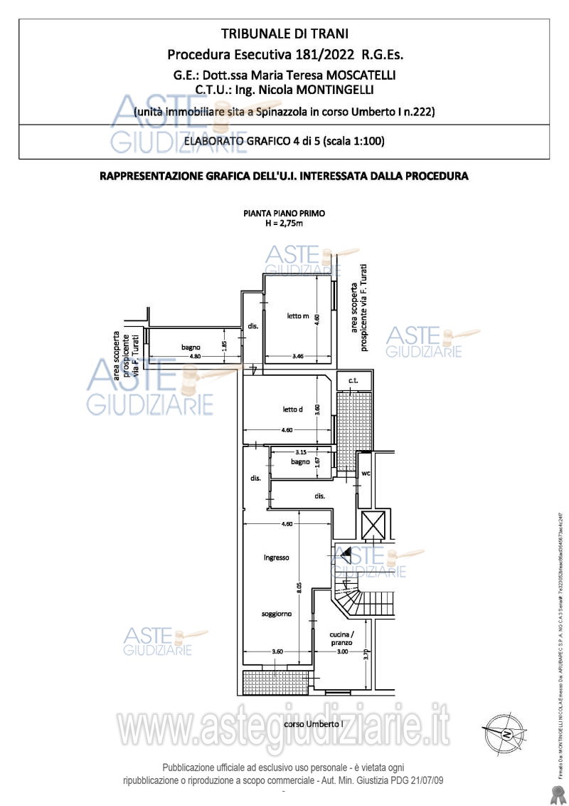 Vendita all'asta Senza incanto, con gara telematica sincrona - LOTTO 4: Abitazione a primo piano, sita a Spinazzola in corso Umberto I, n. 222, avente una superficie lorda complessiva di circa 140 mq. Prezzo base € 40.585,00 (offerta minima € 30.439,00). Data vendita 08/06/2026 ore 09:30. Professionista delegato alla vendita Avv. Mariavittoria Fiore - Email "m.fiore@studiolegalecafagna.com"; Cell. 3395708734; Tel. 08831926557. Custode Giudiziario Avv. Mariavittoria Fiore - Email "m.fiore@studiolegalecafagna.com"; Cell. 3395708734; Tel. 08831926557. Rif. Tribunale di Trani - Esecuzione immobiliare post legge 80 n. 181/2022