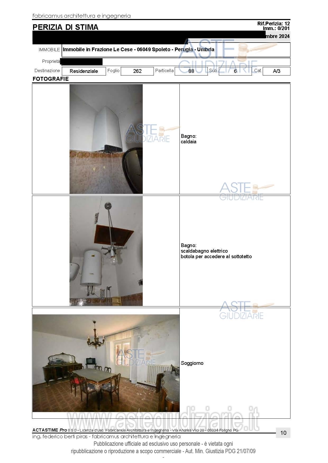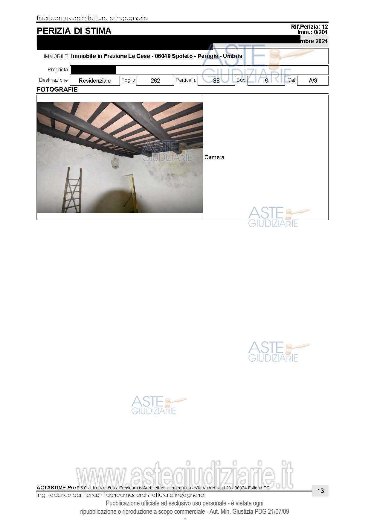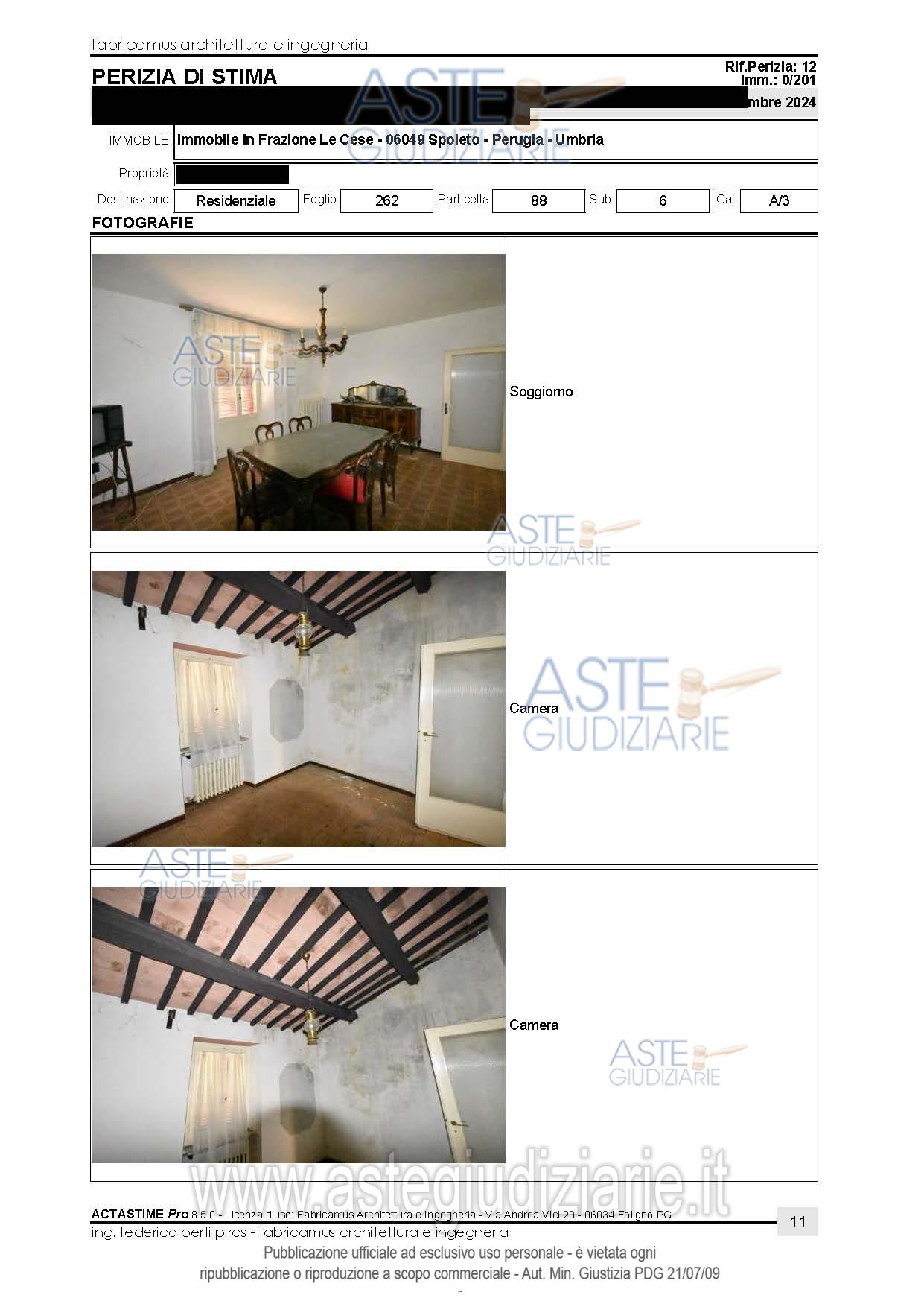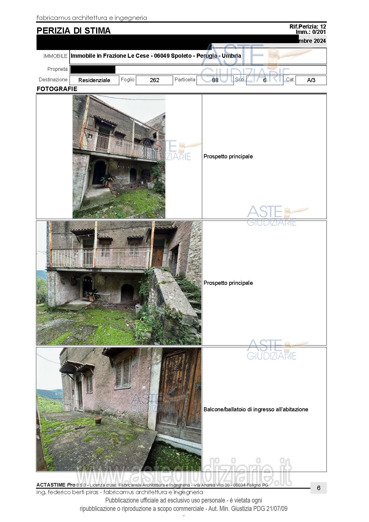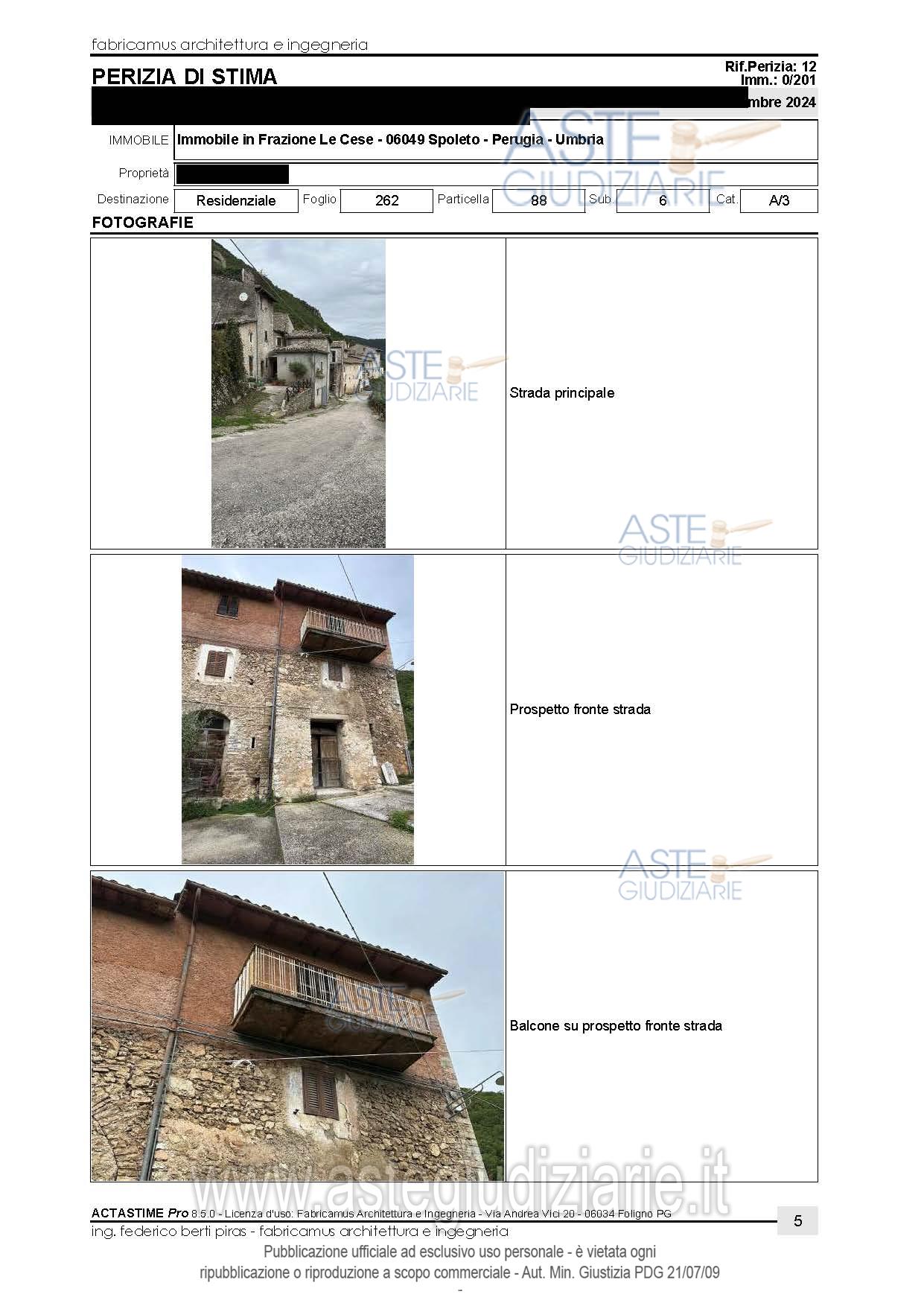 Vendita all'asta Senza incanto, con gara telematica sincrona mista - LOTTO UNICO: SPOLETO (PG) FRAZ. CESE - unità immobiliare composta da una parte residenziale che si sviluppa interamente al piano primo con accesso indipendente e da una pertinenza costituita da un piccolo fondo di circa 17 mq situato al piano terra, anch’esso con accesso indipendente. Prezzo base € 20.000,00 (offerta minima € 15.000,00). Data vendita 21/04/2026 ore 09:00. Giudice Dott. Alberto Cappellini. Professionista delegato alla vendita Avv. Roberto Micanti - Email "roberto.micanti@gmail.com"; Cell. 3403347445. Custode Giudiziario Ivg Perugia - Email "visite@ivgumbria.com"; Tel. 0755913525. Rif. Tribunale di Spoleto - Espropriazione immobiliare (cartabia) n. 51/2024