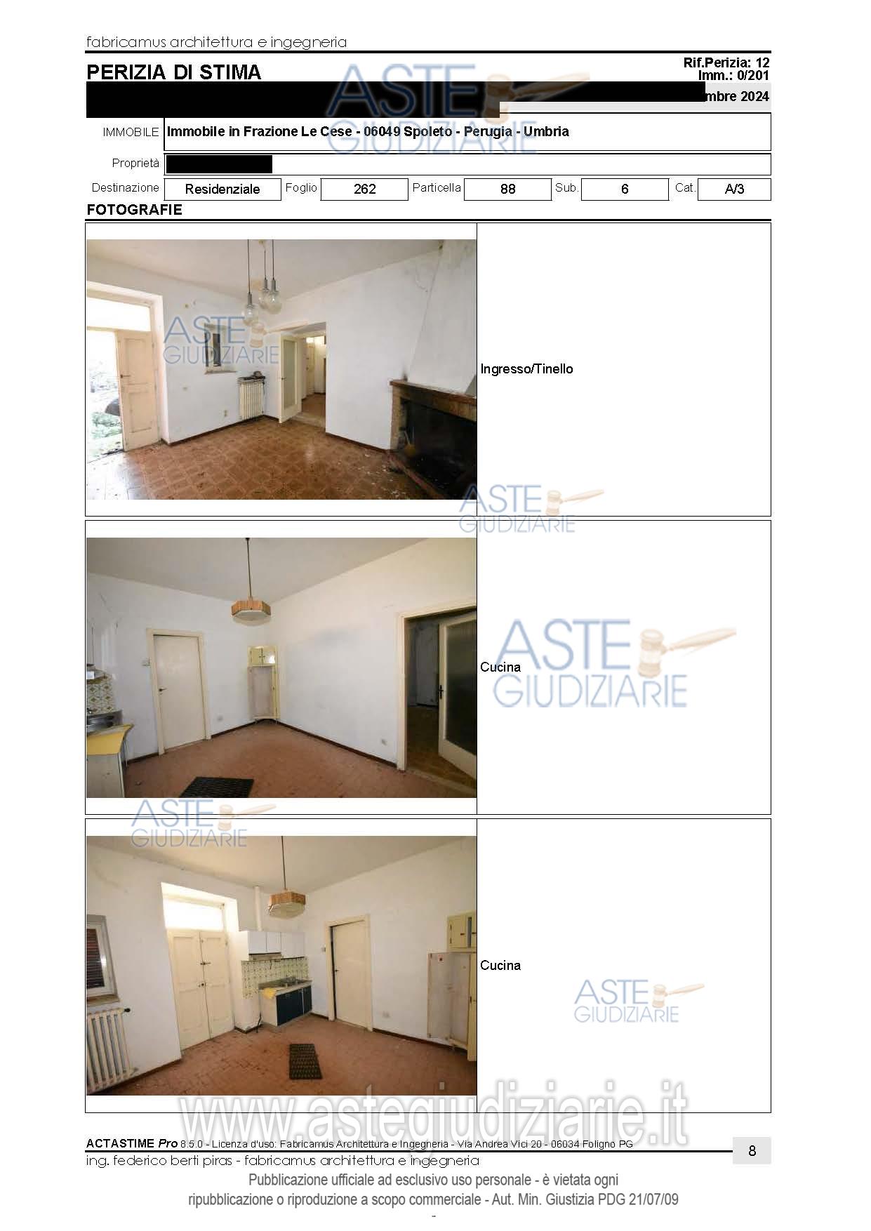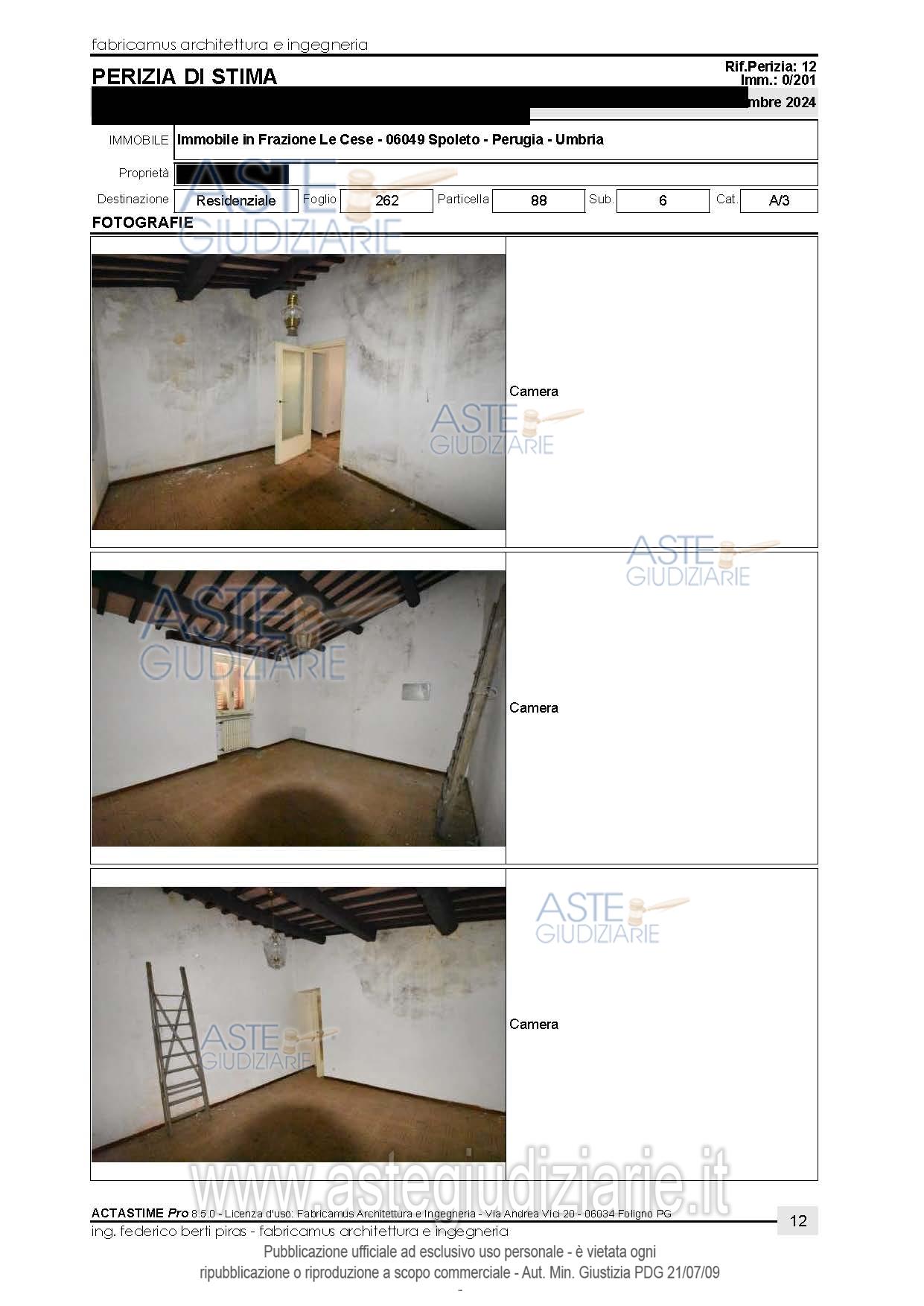 Vendita all'asta Senza incanto, con gara telematica sincrona mista - LOTTO UNICO: SPOLETO (PG) FRAZ. CESE - unità immobiliare composta da una parte residenziale che si sviluppa interamente al piano primo con accesso indipendente e da una pertinenza costituita da un piccolo fondo di circa 17 mq situato al piano terra, anch’esso con accesso indipendente. Prezzo base € 23.200,00 (offerta minima € 17.400,00). Data vendita 15/01/2026 ore 09:00. Giudice Dott. Alberto Cappellini. Professionista delegato alla vendita Avv. Roberto Micanti - Email "roberto.micanti@gmail.com"; Cell. 3403347445. Custode Giudiziario Ivg Perugia - Email "visite@ivgumbria.com"; Tel. 0755913525. Rif. Tribunale di Spoleto - Espropriazione immobiliare (cartabia) n. 51/2024