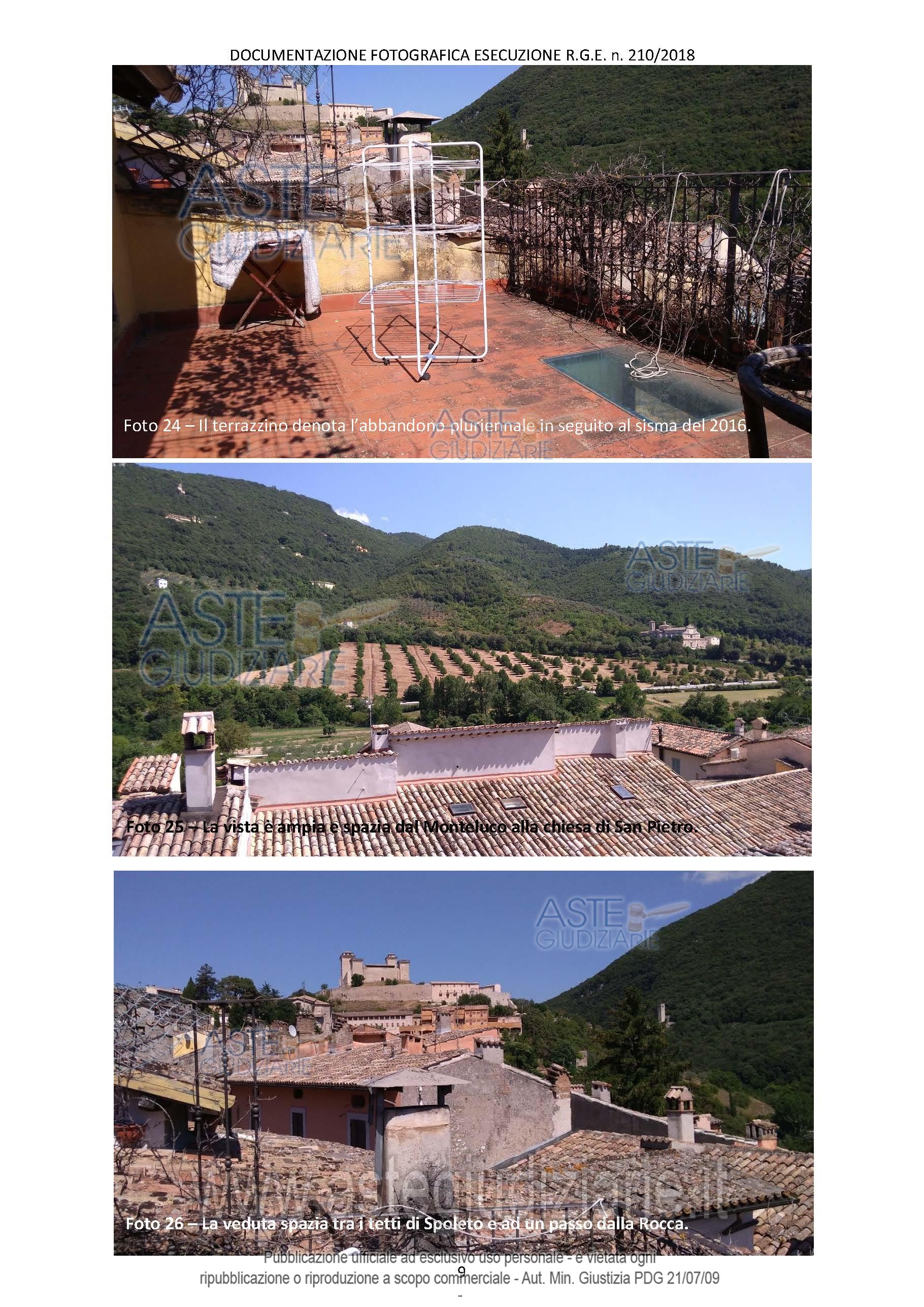 Vendita all'asta Senza incanto, con gara telematica sincrona mista - LOTTO UNICO: SPOLETO (PG) VICOLO DEGLI ABETI N. 4. Prezzo base € 174.150,00 (offerta minima € 130.613,00). Data vendita 05/05/2026 ore 12:00. Giudice Alberto Cappellini. Professionista delegato alla vendita Dott. Gaetano Puma - Email "gaetano.puma@gmail.com"; Tel. 074351855. Custode Giudiziario Ivg Perugia - Email "visite@ivgumbria.com"; Tel. 0755913525. Rif. Tribunale di Spoleto - Esecuzione immobiliare post legge 80 n. 210/2018
