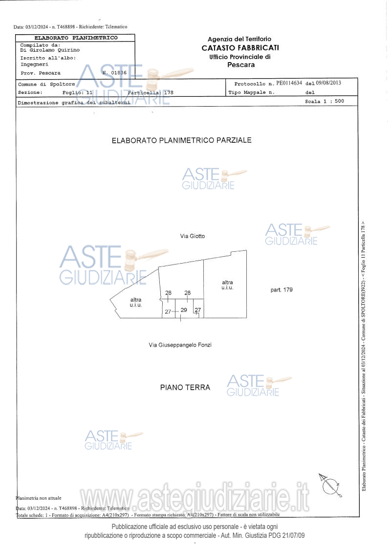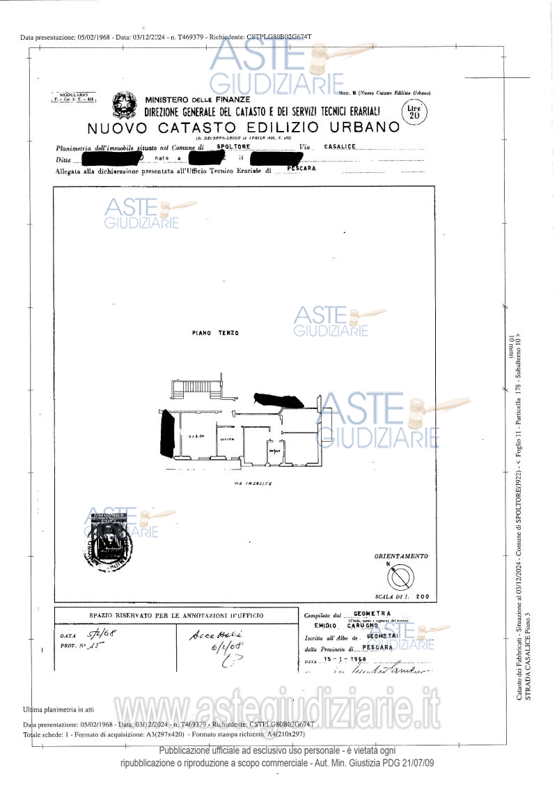 Vendita all'asta Senza incanto, con gara telematica asincrona - LOTTO UNICO:  Appartamento al piano terzo composto da quattro vani e accessori. Prezzo base € 78.750,00 (offerta minima € 59.062,50). Data inizio operazioni di vendita: 11/11/2025 ore 15:00. Giudice Dott. Daniela Angelozzi. Professionista delegato alla vendita Not. Daniela Giampietro. Custode Giudiziario Not. Daniela Giampietro - Email "dgiampietro@notariato.it".  Rif. Tribunale di Pescara - Espropriazione immobiliare (cartabia) n. 179/2024