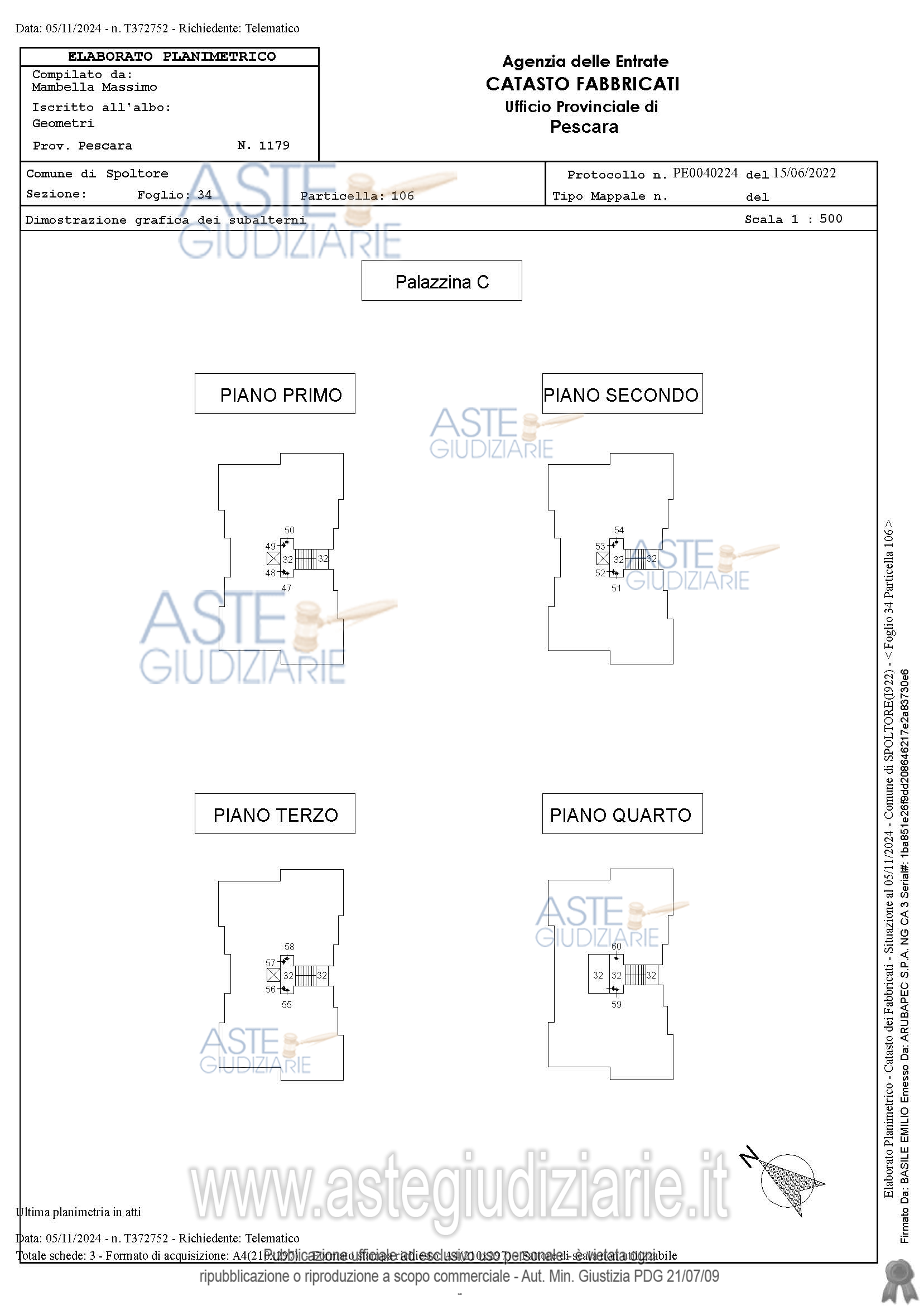 Vendita all'asta Senza incanto, con gara telematica asincrona - LOTTO UNICO: In Spoltore (PE), via Arno, n. 16, diritti di piena proprietà su appartamento (mq. 106,83) ricompreso all'interno di un complesso residenziale composto di n°3 palazzine con ingresso da cancello automatizzato e con aree verdi e pavimentate comuni ai fabbricati. Garage ubicato a Spoltore (PE) - Via Arno, 16, piano T. Prezzo base € 102.459,00 (offerta minima € 76.844,25). Data inizio operazioni di vendita: 14/04/2026 ore 09:00. Giudice Daniela Angelozzi. Professionista delegato alla vendita Avv. Paolo Galliani. Custode Giudiziario Avv. Paolo Galliani - Email "avv.galliani@hotmail.it". Rif. Tribunale di Pescara - Espropriazione immobiliare (cartabia) n. 169/2024
