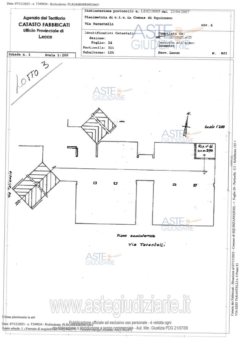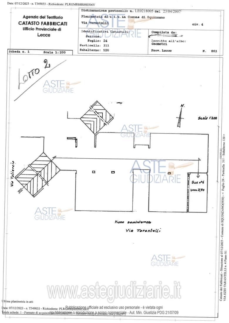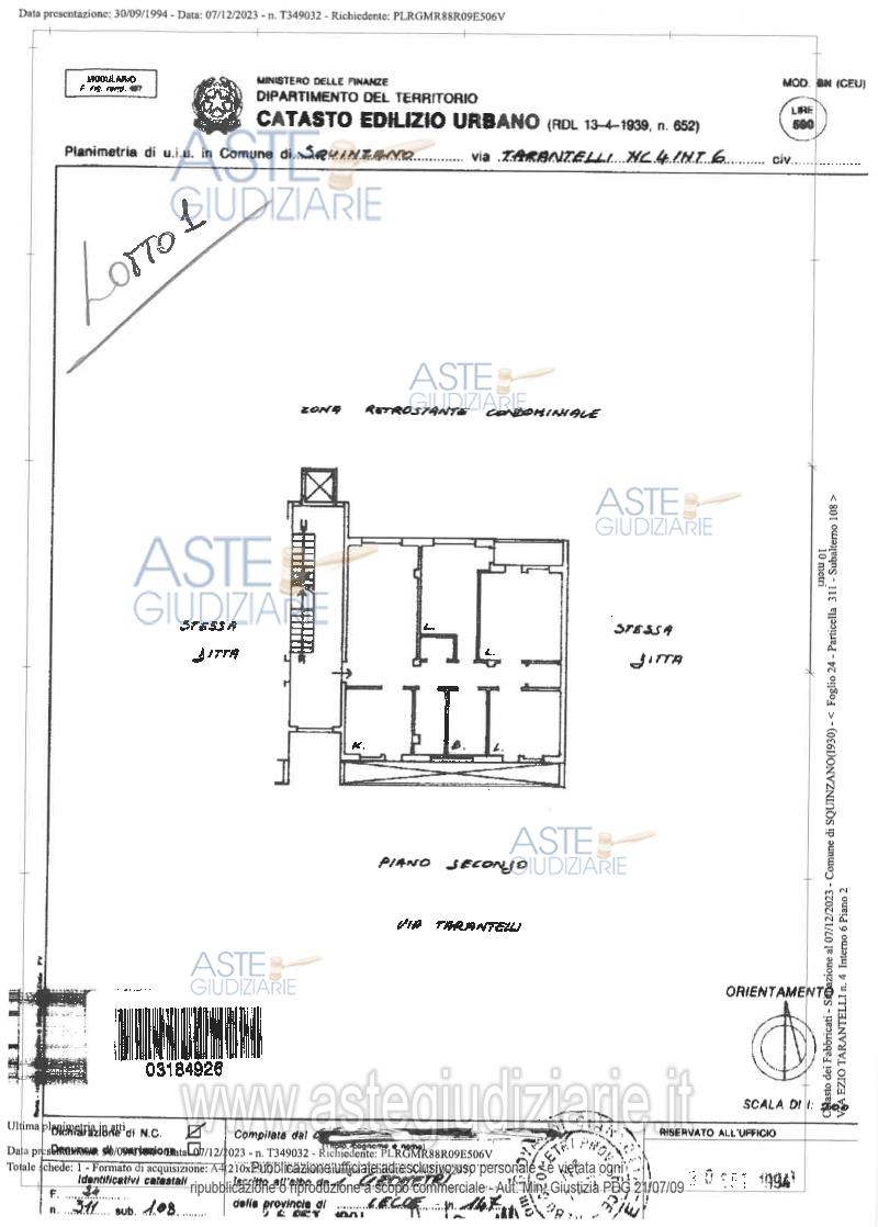 Vendita all'asta Senza incanto, con gara telematica asincrona - LOTTO UNICO: Abitazione, deposito e deposito ripostiglio per la quota di 1000/1000 di piena proprietà in Squinzano (Le) alla via Ezio Tarantelli n. 4.Nel N.C.E.U. al foglio 24,-P.lla 311 sub 108, cat. A/3, Cl. 4, vani 6.5, Rendita €. 386.05, Piano 2-P.lla 311 sub 120, cat. C/6, Cl. 3, mq. 25, Rendita €. 56.81, Piano S1-P.lla 311 sub 125, cat. C/6, Cl. 3, mq. 8, Rendita €. 18.18, Piano S1. Prezzo base € 76.500,00 (offerta minima € 57.375,00). Data inizio operazioni di vendita: 22/06/2026 ore 10:00. Professionista delegato alla vendita Dott. Giancarlo Schiavone - Email "giancarloschiavone70@gmail.com"; Tel. 3395869875. Rif. Tribunale di Lecce - Contenzioso civile n. 1711/2025