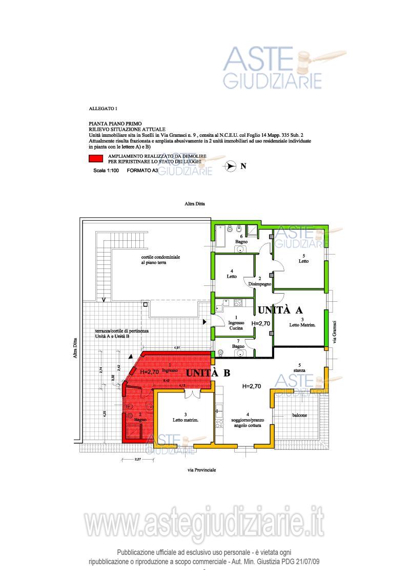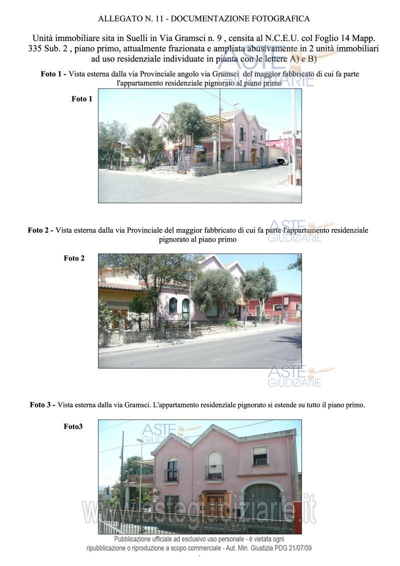 Vendita all'asta Senza incanto, con gara telematica asincrona - LOTTO UNICO: quota pari all’intero del diritto di proprietà su appartamento per civile abitazione al piano primo di maggior fabbricato, con accesso da cortile condominiale in via Gramsci n° 9, composto di ingresso-soggiorno, cucina, tre camere, due bagni, disimpegno, oltre due verande. Prezzo base € 41.700,00 (offerta minima € 31.275,00). Data inizio operazioni di vendita: 15/10/2025 ore 11:00. Giudice Dott. Flaminia Ielo. Professionista delegato alla vendita Not. Lamberto Corda - Email "lcorda.fatturazione@tiscali.it"; Tel. 070657912. Custode Giudiziario Istituto Vendite Giudiziarie Di Cagliari - Email "ivg.visiteimmobili@tiscali.it"; Tel. 070 2299036. Rif. Tribunale di Cagliari - Esecuzione immobiliare post legge 80 n. 343/2015