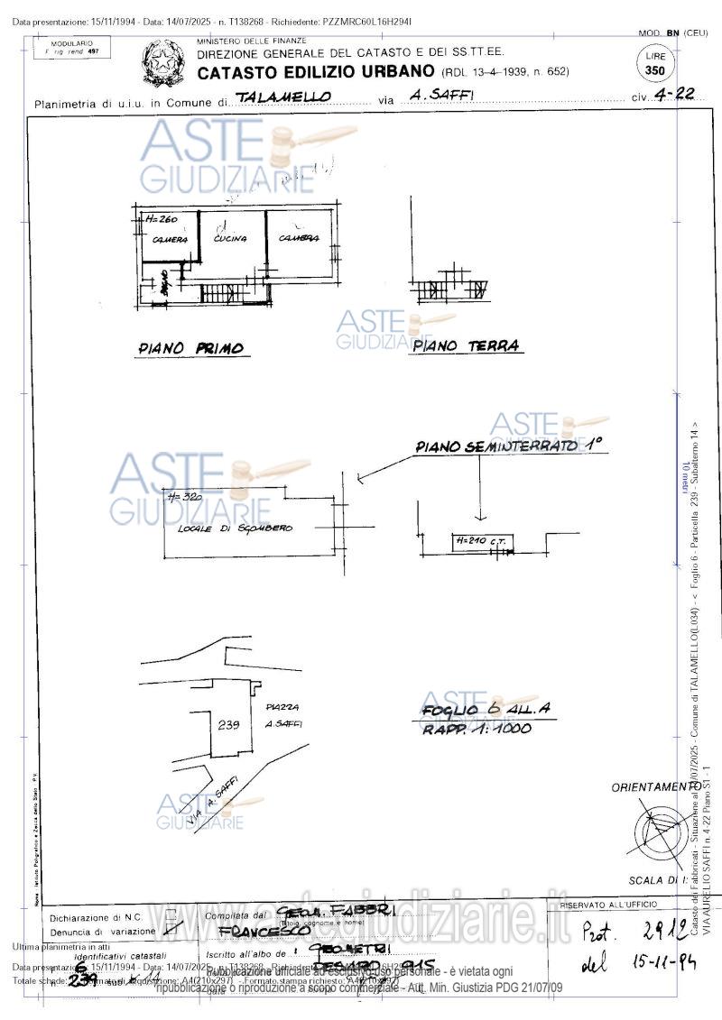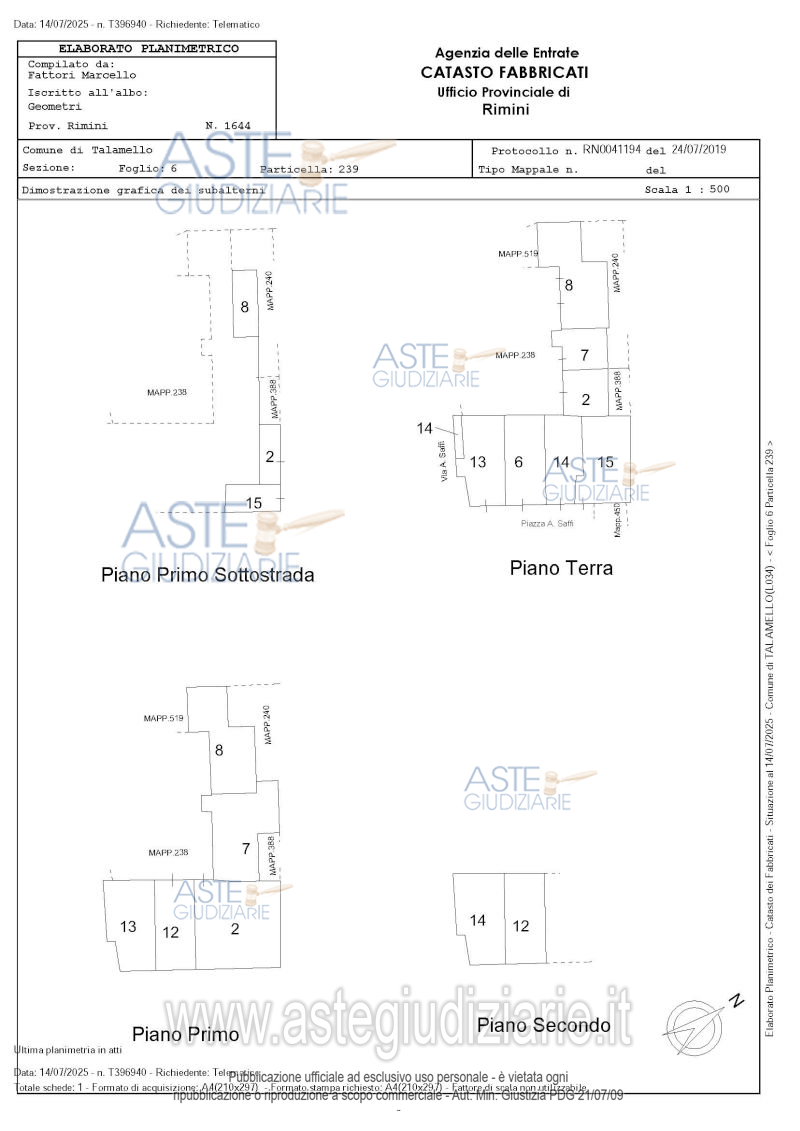 Vendita all'asta Senza incanto, con gara telematica asincrona - LOTTO UNICO: Piena proprietà di porzioni dell’agglomerato edilizio di remota edificazione, posto nel Comune di Talamello, Piazza Saffi, 4, e precisamente:- appartamento al piano primo composto da zona giorno con angolo cottura, due camere e un servizio igienico;- locale ad uso ripostiglio e locale ad uso centrale termica al piano seminterrato. Prezzo base € 46.000,00 (offerta minima € 34.500,00). Data inizio operazioni di vendita: 28/04/2026 ore 08:30. Giudice Dott. Letizia Bocchini. Professionista delegato alla vendita Avv. Paolo Serafini - Email "paoloserafini67@gmail.com"; Cell. 3334281897. Custode Giudiziario Avv. Paolo Serafini - Email "paoloserafini67@gmail.com"; Cell. 3334281897. Rif. Tribunale di Rimini - Espropriazione immobiliare (cartabia) n. 10/2025