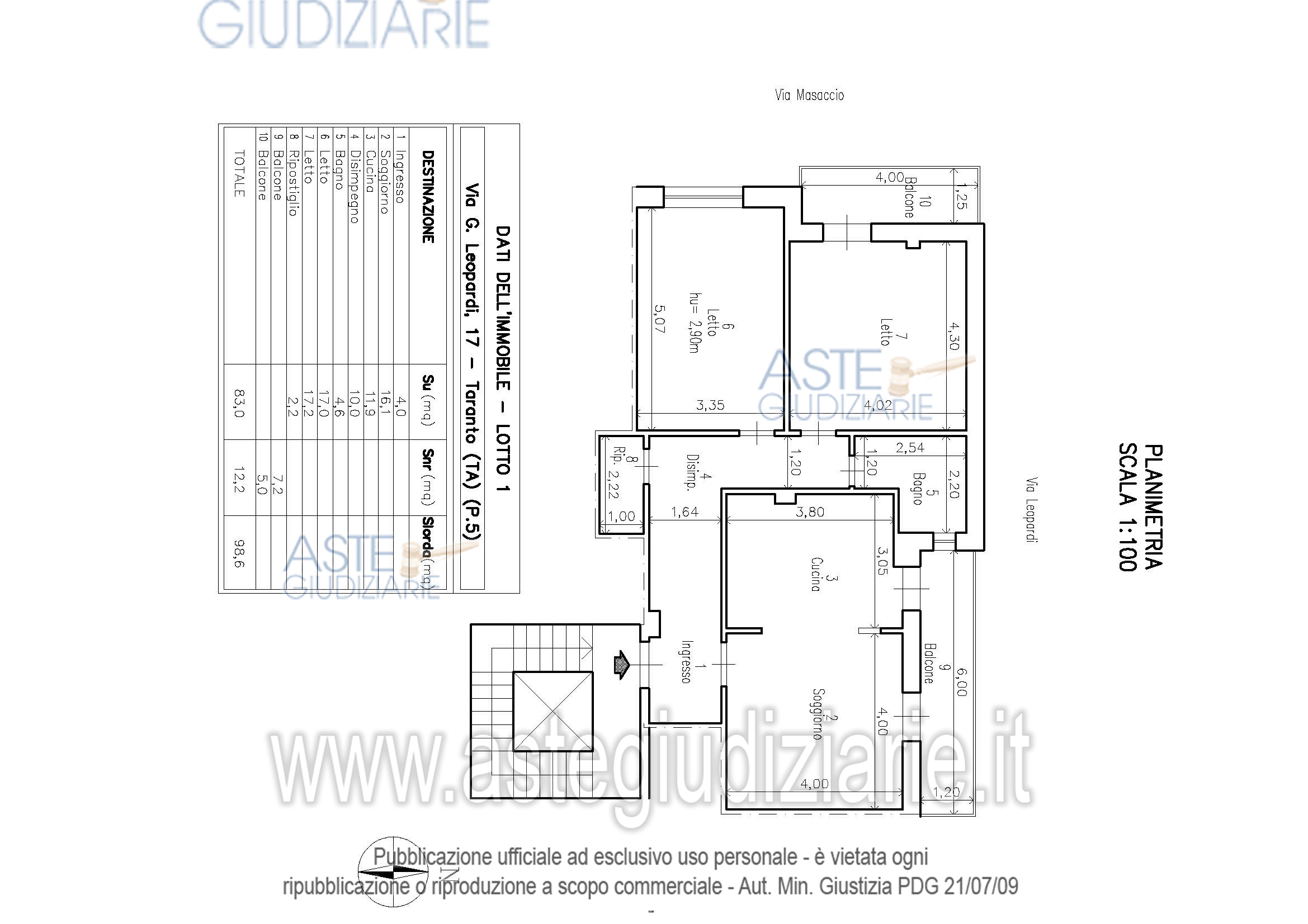 (TA), quartiere Tamburi, porzione del fabbricato ubicato in via G. Leopardi n.