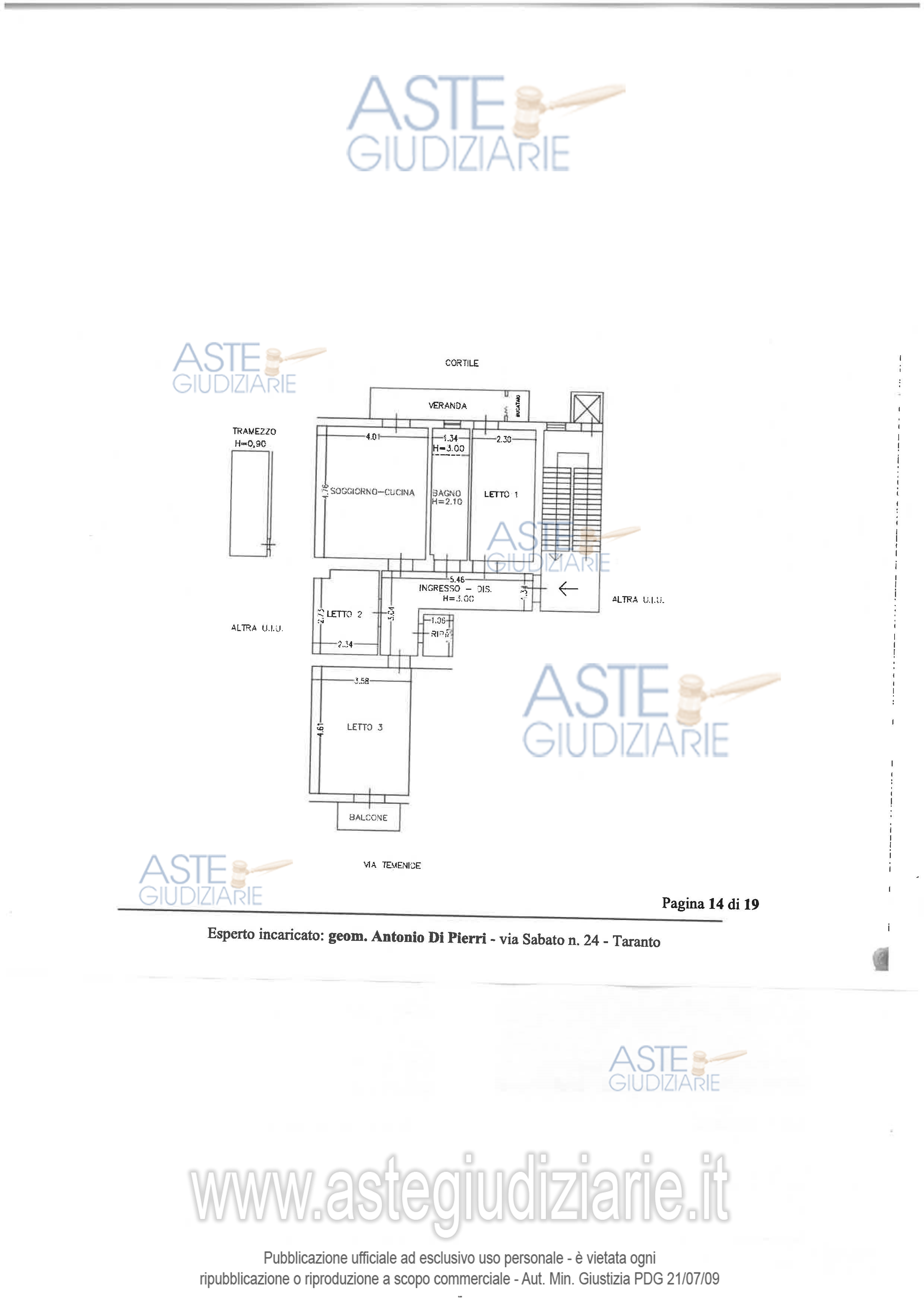 Vendita all'asta Senza incanto, con gara telematica asincrona - LOTTO UNICO: Intera piena proprietà dell’appartamento al 2 piano del fabbricato con ascensore sito in Taranto alla via Temenide n. 56, con porta d’ingresso posta a destra di chi sale; composto da un ingresso-disimpegno, soggiorno-cucina, 3 vani letto, un bagno (dove è stato realizzato un tramezzo) e un ripostiglio, il tutto per una superficie utile di mq. 71 circa oltre due balconi, in cui in uno è presente un piccolo bucataio. Prezzo base € 24.679,50 (offerta minima € 18.509,62). Data inizio operazioni di vendita: 01/07/2026 ore 17:30. Giudice Dott. Andrea Paiano. Professionista delegato alla vendita Avv. Maria Teresa De Luca - Email "avvmtdeluca@gmail.com"; Tel. 0994535699. Custode Giudiziario Avv. Maria Teresa De Luca - Email "avvmtdeluca@gmail.com"; Tel. 0994535699. Rif. Tribunale di Taranto - Espropriazione immobiliare (cartabia) n. 392/2023