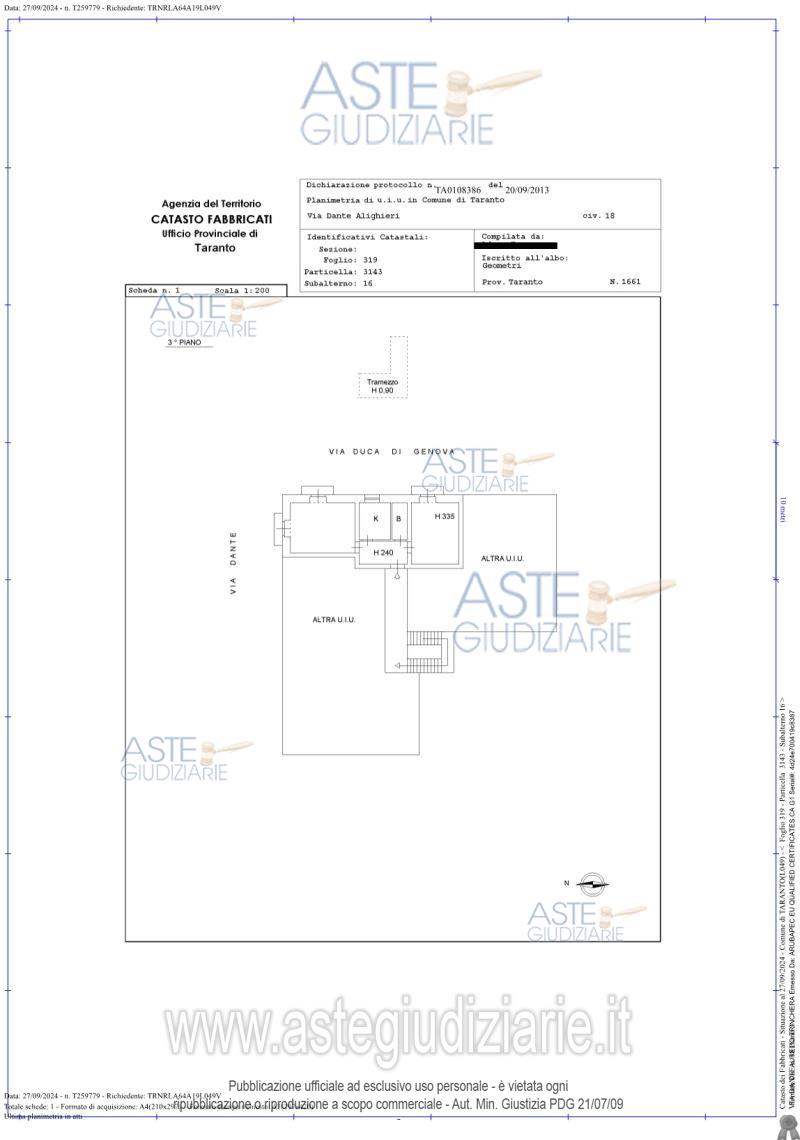 Vendita in attesa dell'emissione del nuovo bando d'asta. LOTTO UNICO: Abitazione in condominio al terzo piano. Ultimo prezzo base € 30.938,00 (offerta minima € 23.204,00). Giudice Dott. Andrea Paiano. Professionista delegato alla vendita Avv. Saverio Di Fonzo - Email "saveriodifonzo@libero.it". Custode Giudiziario Avv. Saverio Di Fonzo - Email "saveriodifonzo@libero.it". Rif. Tribunale di Taranto - Espropriazione immobiliare (cartabia) n. 31/2024