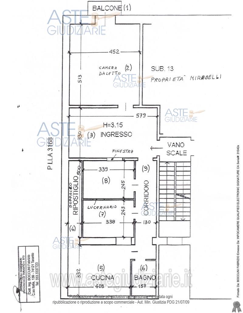Vendita all'asta Senza incanto, con gara telematica asincrona - LOTTO UNICO: Appartamento al piano terzo. Prezzo base € 36.478,68 (offerta minima € 27.359,01). Data inizio operazioni di vendita: 26/05/2026 ore 17:00. Giudice Dott. Andrea Paiano. Professionista delegato alla vendita Avv. Camilla Baldassarre. Custode Giudiziario Avv. Ivg Taranto - Email "ivgta.visiteimmobili@gmail.com". Rif. Tribunale di Taranto - Espropriazione immobiliare (cartabia) n. 80/2024