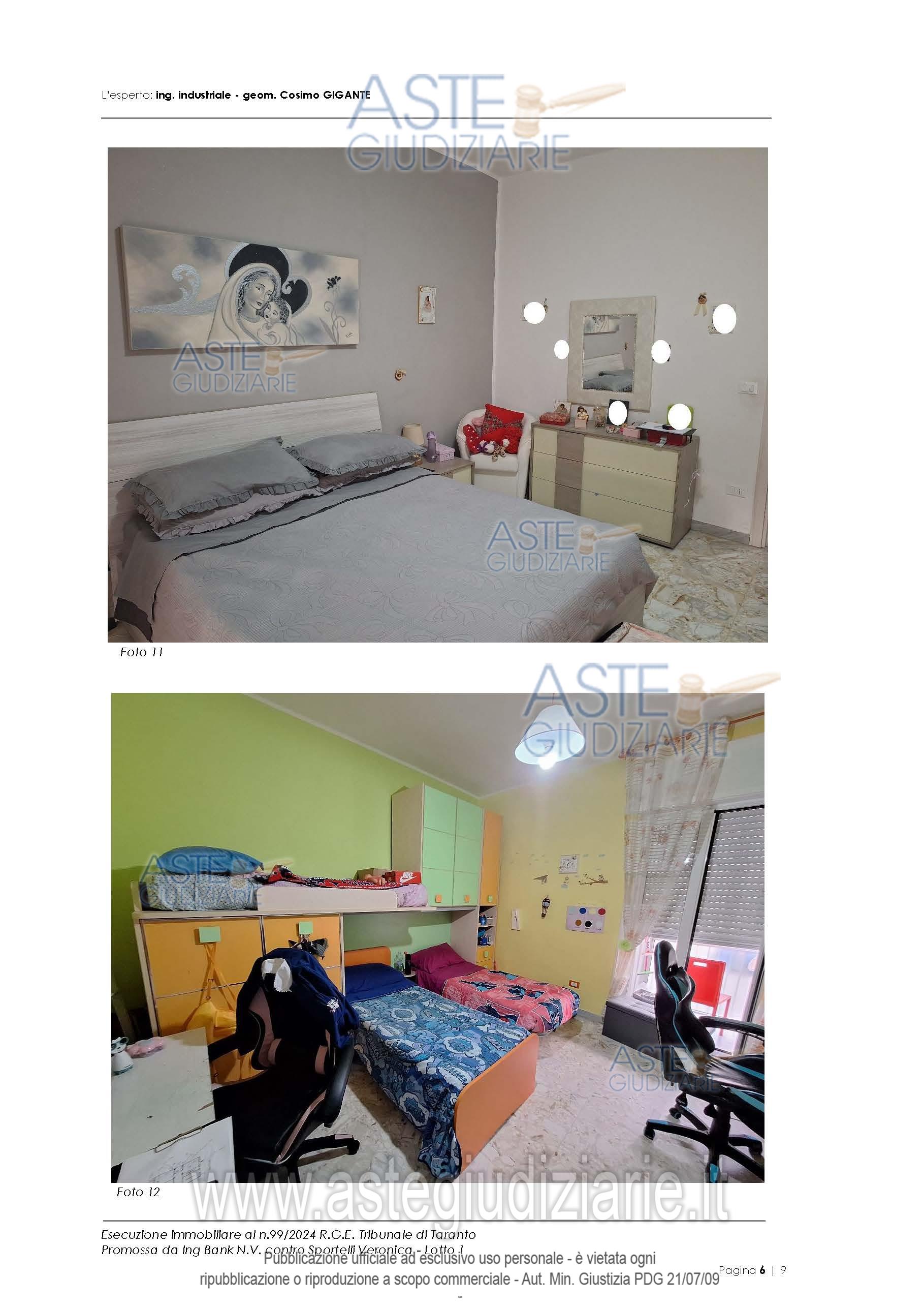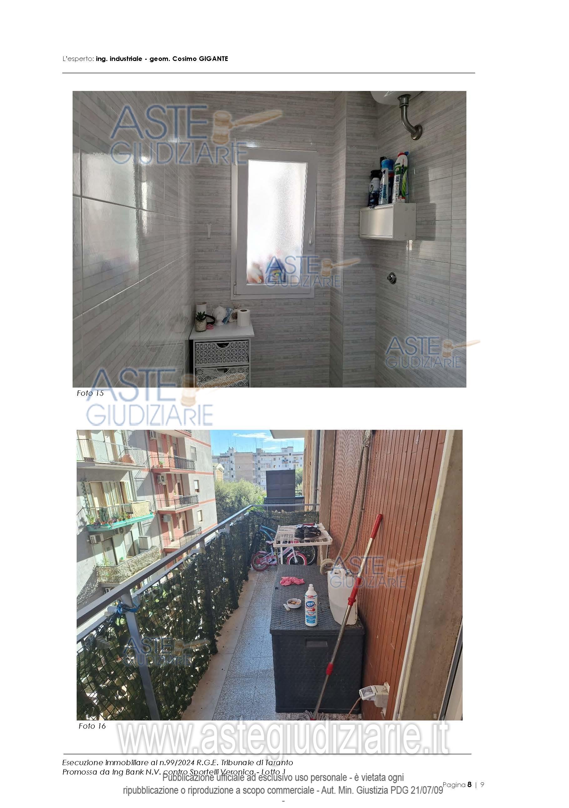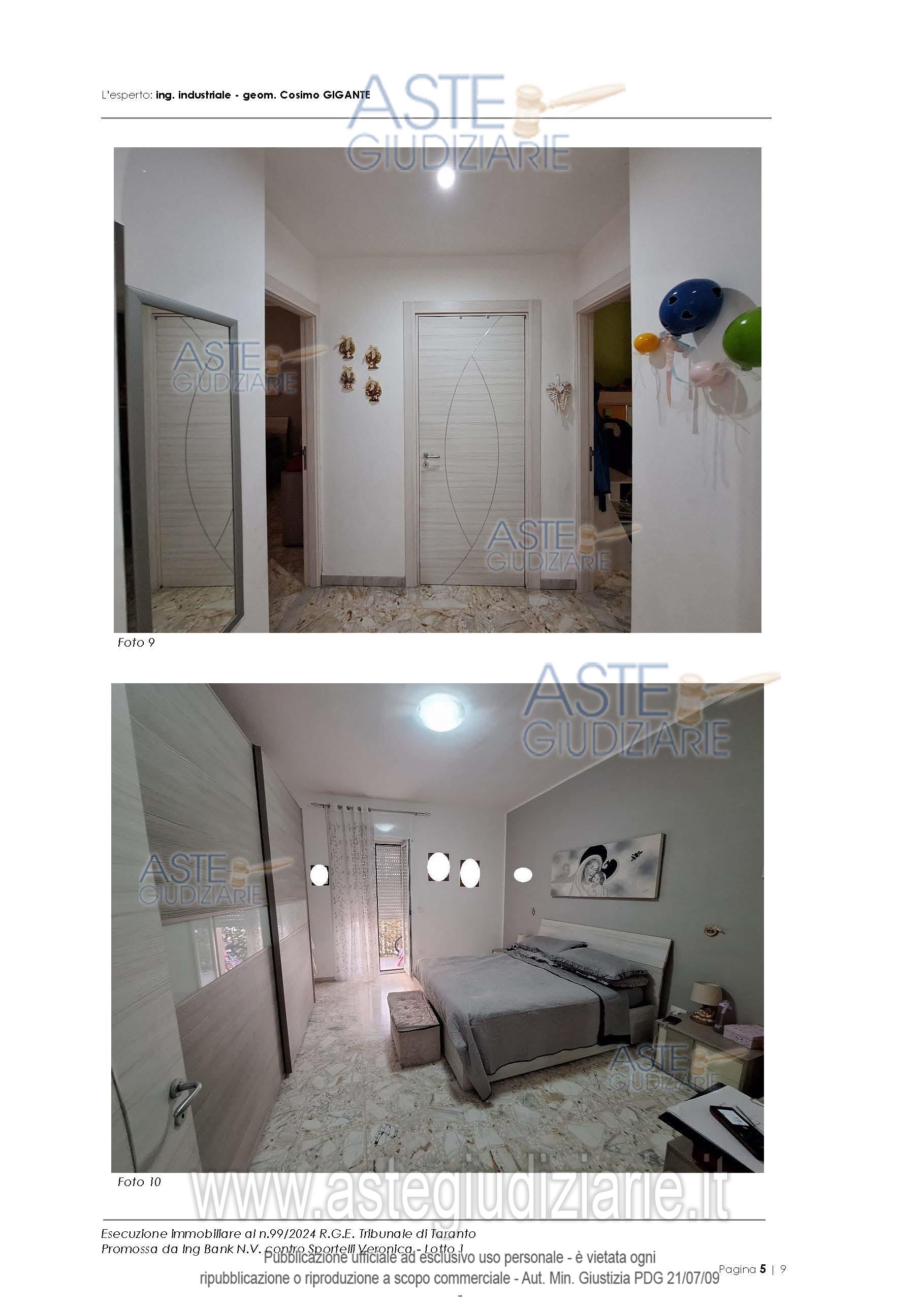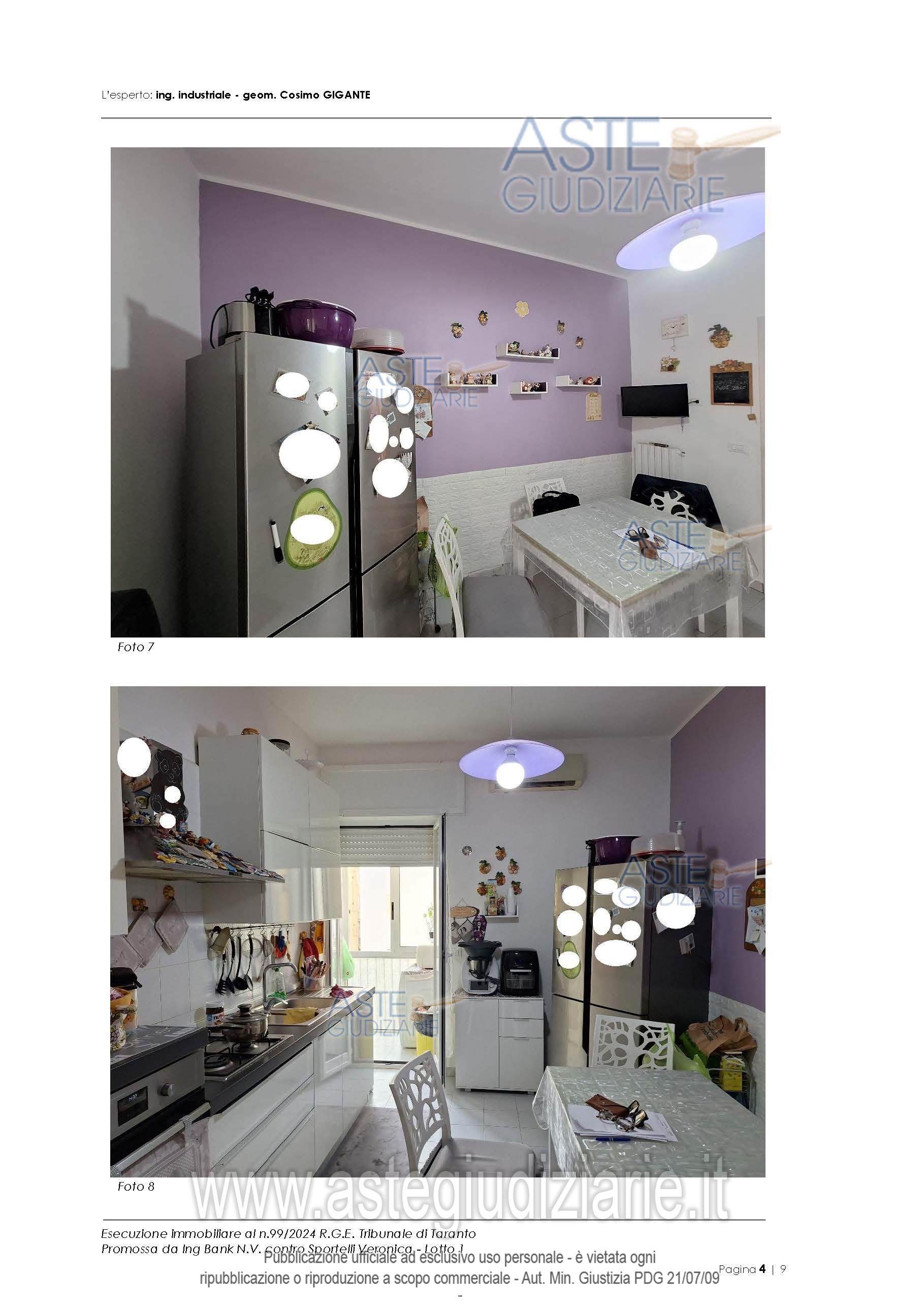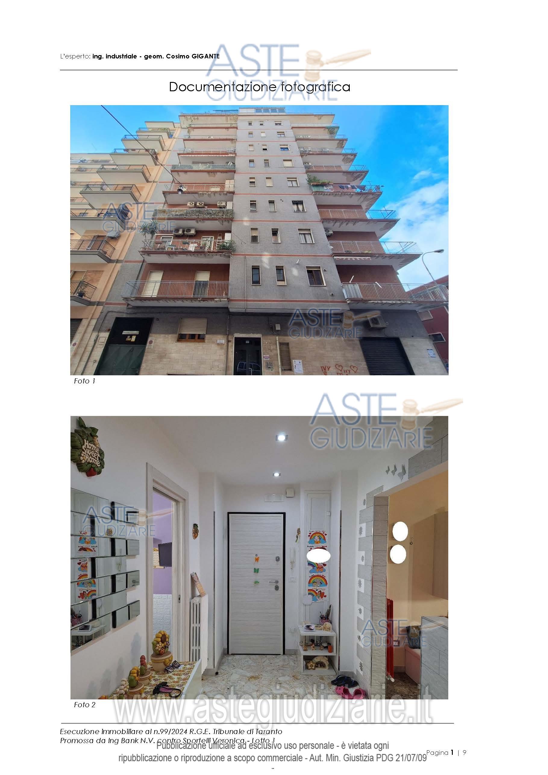 Vendita all'asta Senza incanto, con gara telematica asincrona - LOTTO UNICO: Piena proprietà dell’appartamento porzione del fabbricato e precisamente quello posto ivi al piano terzo con ingresso dalla prima porta a destra salendo le scale, ovvero seconda porta a sinistra uscendo dall’ascensore, articolatoin complessivi tre vani, con cucina, servizi ed accessori, per una superficie utile interna dicirca 83 mq, oltre a balconi di circa 14 mq. Prezzo base € 68.850,00 (offerta minima € 51.637,50). Data inizio operazioni di vendita: 04/11/2025 ore 17:30. Giudice Francesca Zanna. Professionista delegato alla vendita Avv. Stefania Maselli. Custode Giudiziario Avv. Stefania Maselli - Email "avvstefaniamaselli@libero.it". Rif. Tribunale di Taranto - Espropriazione immobiliare (cartabia) n. 99/2024