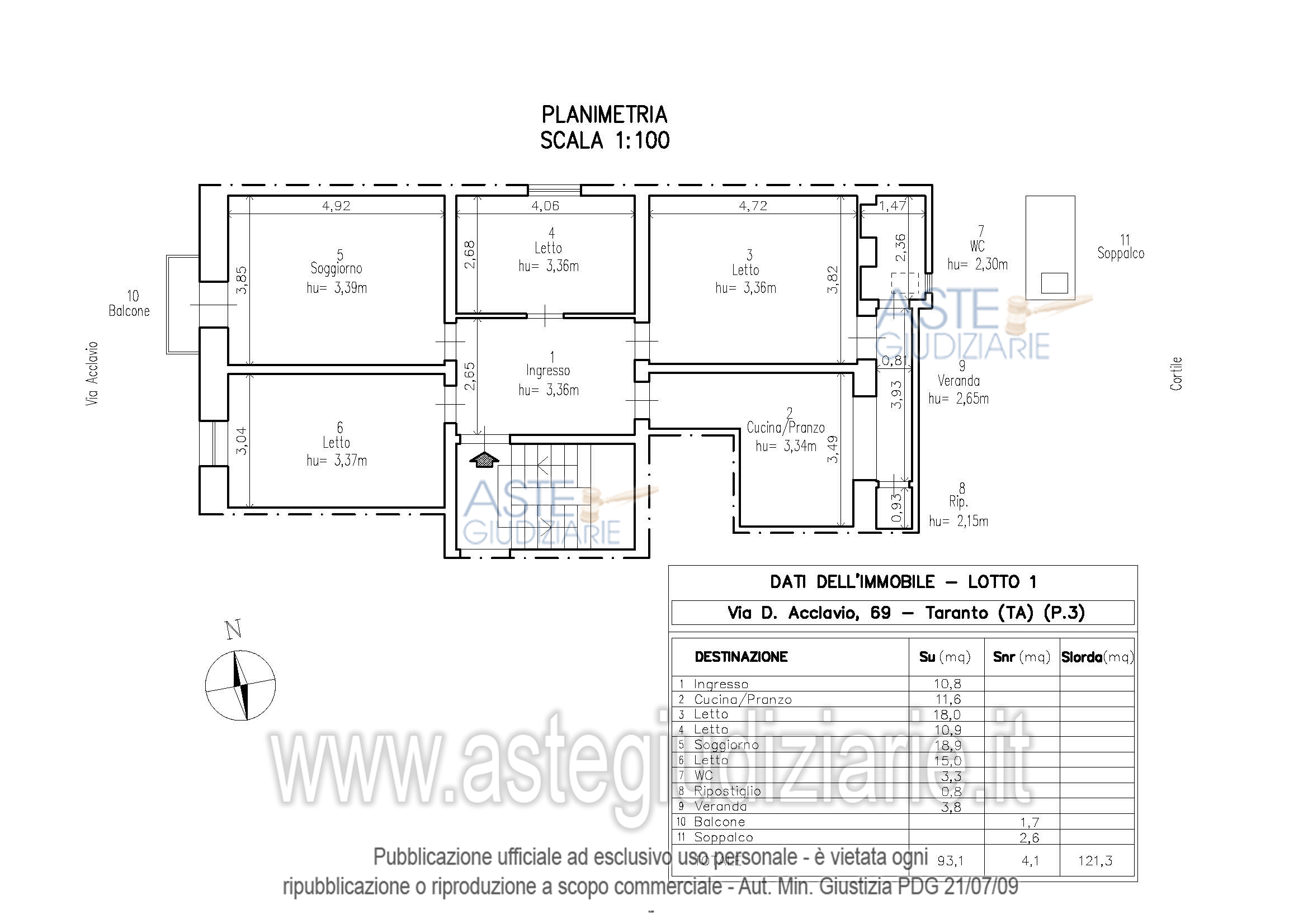 Vendita in attesa dell'emissione del nuovo bando d'asta. LOTTO UNICO: Piena proprietà dell’abitazione di tipo economico, al terzo piano. Ultimo prezzo base € 56.250,00 (offerta minima € 42.500,00). Professionista delegato alla vendita Avv. Vita Santoro. Custode Giudiziario Avv. Vita Santoro - Email "santoro.tea@libero.it". Rif. Tribunale di Taranto - Espropriazione immobiliare (cartabia) n. 404/2023