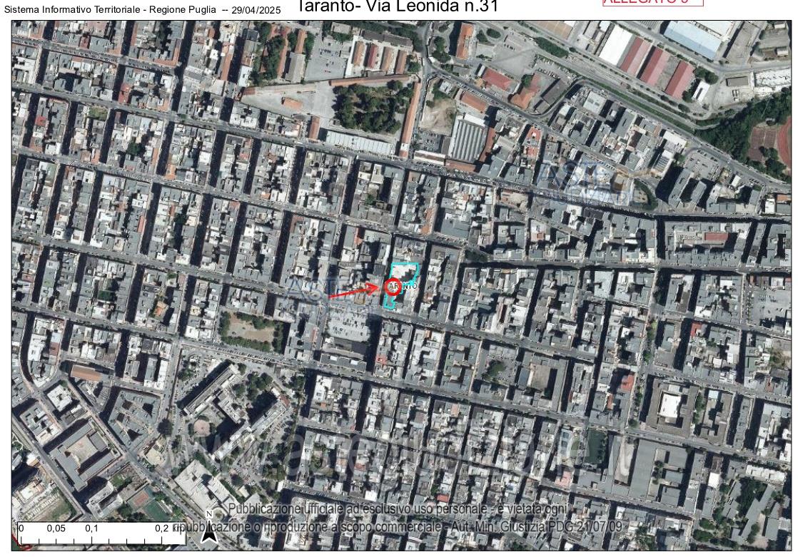 Vendita all'asta Senza incanto, con gara telematica asincrona - LOTTO UNICO: Piena proprietà dell’appartamento sito in Taranto alla via Leonida n. 31 posto al quinto piano, con porta d’ingresso a destra salendo le scale, non servito da ascensore, composto da due vani, cucina, bagno, ripostiglio e disimpegno, per una superficie utile interna di mq 75,5 circa. Prezzo base € 32.250,00 (offerta minima € 24.188,00). Data inizio operazioni di vendita: 03/02/2026 ore 16:00. Giudice Dott. Andrea Paiano. Professionista delegato alla vendita Avv. Domenica Stigliano. Custode Giudiziario Avv. Domenica Stigliano - Email "avv.dstigliano@gmail.com". Rif. Tribunale di Taranto - Espropriazione immobiliare (cartabia) n. 330/2024