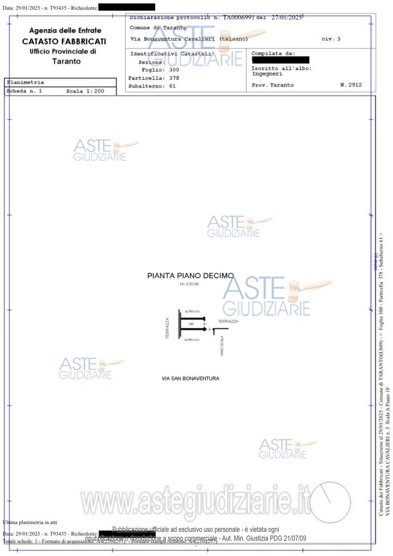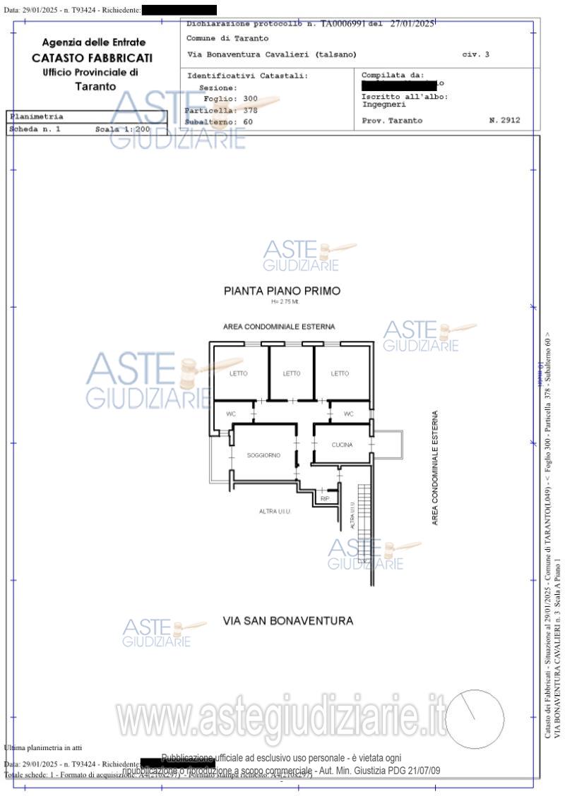Vendita in attesa dell'emissione del nuovo bando d'asta. LOTTO 1: Piena proprietà superficiaria di appartamento al piano primo e pertinenziale cantinola al piano terrazzo. Ultimo prezzo base € 122.250,00 (offerta minima € 91.688,00). Giudice Dott. Andrea Paiano. Professionista delegato alla vendita Avv. Dario Lupo - Email "studio@dariolupo.it". Custode Giudiziario Avv. Ivg Taranto - Email "ivgta.visiteimmobili@gmail.com". Rif. Tribunale di Taranto - Espropriazione immobiliare (cartabia) n. 197/2023