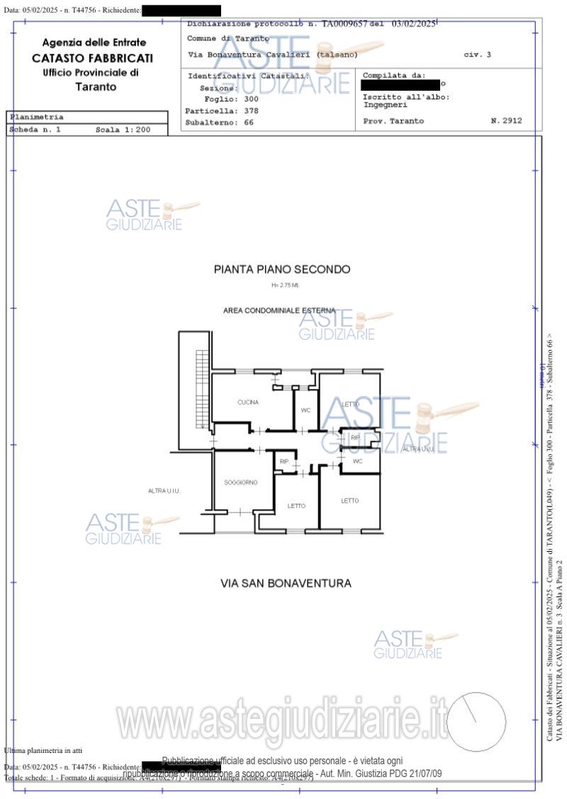 Vendita in attesa dell'emissione del nuovo bando d'asta. LOTTO 3: Piena proprietà superficiaria su appartamento al piano secondo, con pertinenziale cantinola. Ultimo prezzo base € 141.400,00 (offerta minima € 106.050,00). Giudice Dott. Andrea Paiano. Professionista delegato alla vendita Avv. Dario Lupo - Email "studio@dariolupo.it". Custode Giudiziario Avv. Ivg Taranto - Email "ivgta.visiteimmobili@gmail.com". Rif. Tribunale di Taranto - Espropriazione immobiliare (cartabia) n. 197/2023