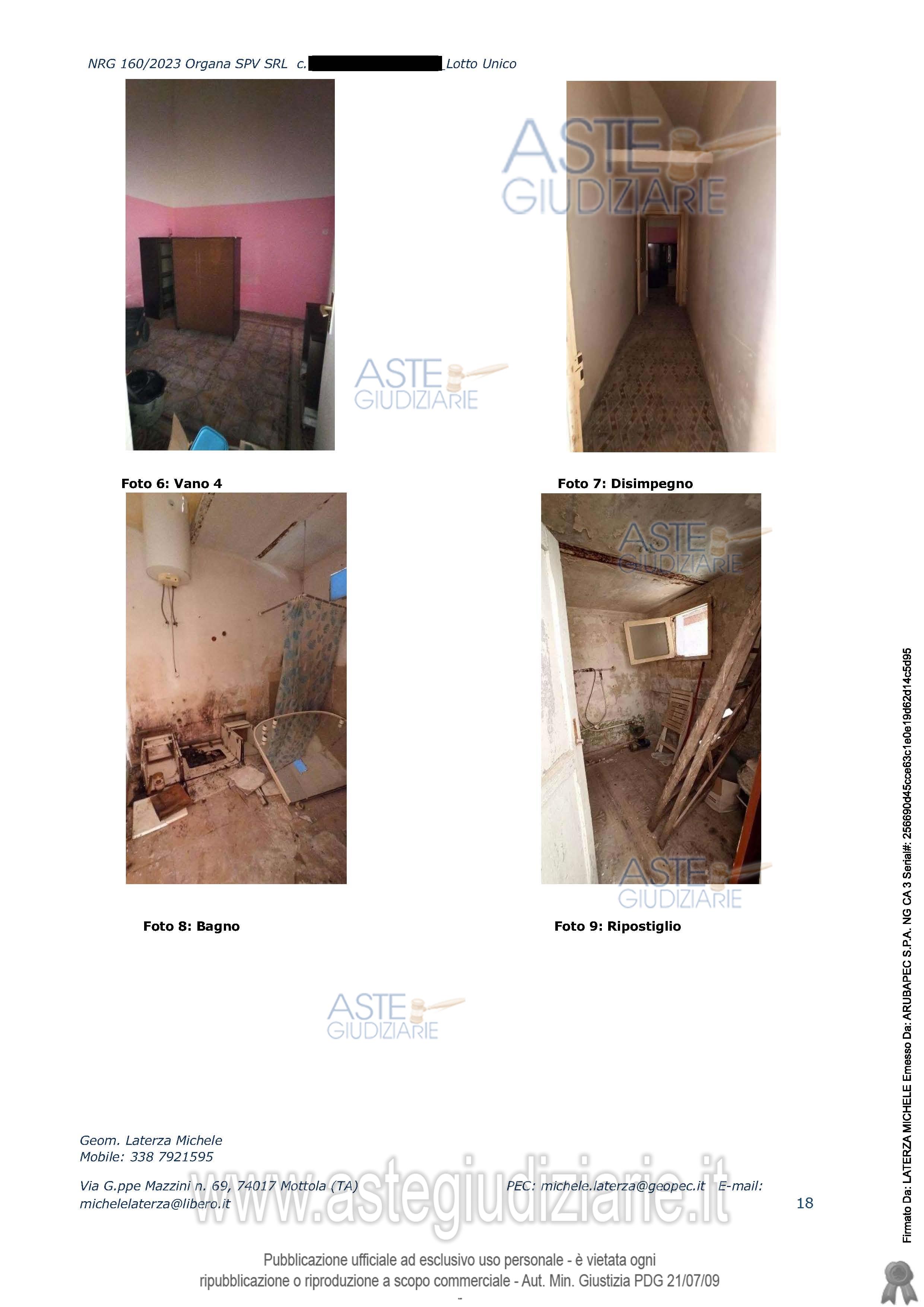 Vendita all'asta Senza incanto, con gara telematica asincrona - LOTTO UNICO: Piena proprietà dell’immobile posto al piano terra composto all’interno daquattro vani, disimpegno, bagno e ripostiglio. Prezzo base € 22.500,00 (offerta minima € 16.875,00). Data inizio operazioni di vendita: 12/05/2026 ore 18:00. Giudice Andrea Paiano. Professionista delegato alla vendita Avv. Valentina Gigante. Custode Giudiziario Avv. Valentina Gigante - Email "avv.vgigante@virgilio.it"; Cell. 3466050367. Rif. Tribunale di Taranto - Espropriazione immobiliare (cartabia) n. 160/2023