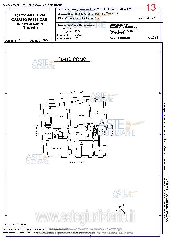 Vendita all'asta Senza incanto, con gara telematica asincrona - LOTTO 3: Abitazione al primo piano, della superficie utile di mq 142,10, con ingresso dai due androni al p.t. di un edificio di pregio recentemente restaurato nel centro storico della Città Vecchia di Taranto alla Via Paisiello n.38/40 e C.so Vitt. Emanuele II. Prezzo base € 245.625,00 (offerta minima € 184.219,00). Data inizio operazioni di vendita: 28/04/2026 ore 16:00. Custode Giudiziario Dott. Cosimo Valentini - Email "segreteria@cosimovalentini.it". Rif. Tribunale di Taranto - Liquidazione giudiziale(cci) n. 51/2024