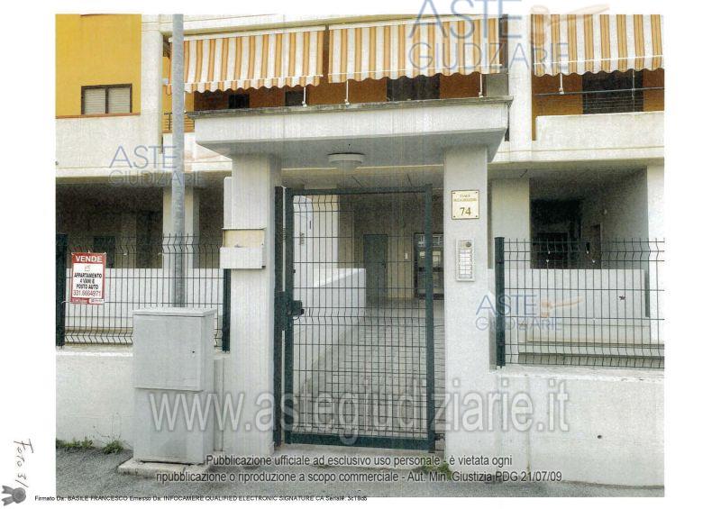 Vendita all'asta Senza incanto, con gara telematica asincrona - LOTTO UNICO: Appartamento sito in Taranto, Quartiere Paolo VIº, Viale della Liberazione n. 74, Piano 5, con porta di ingresso a destra salendo le scale, composto da soggiorno, tre camere da letto, cucina, due bagni e un ripostiglio, per una superficie utile di mq. 98,95 più n. 2 balconi esterni aventi superficie di mq. 25,17. Il lotto comprende un box auto al piano seminterrato avente superficie utile di ca. 24,57 mq. Prezzo base € 116.600,00 (offerta minima € 87.450,00). Data inizio operazioni di vendita: 10/03/2026 ore 16:00. Giudice Dott. Andrea Paiano. Professionista delegato alla vendita Avv. Luigi De Raho. Custode Giudiziario Ivg Taranto - Email "ivgta.visiteimmobili@gmail.com"; Tel. 0999946442. Rif. Tribunale di Taranto - Espropriazione immobiliare (cartabia) n. 109/2025