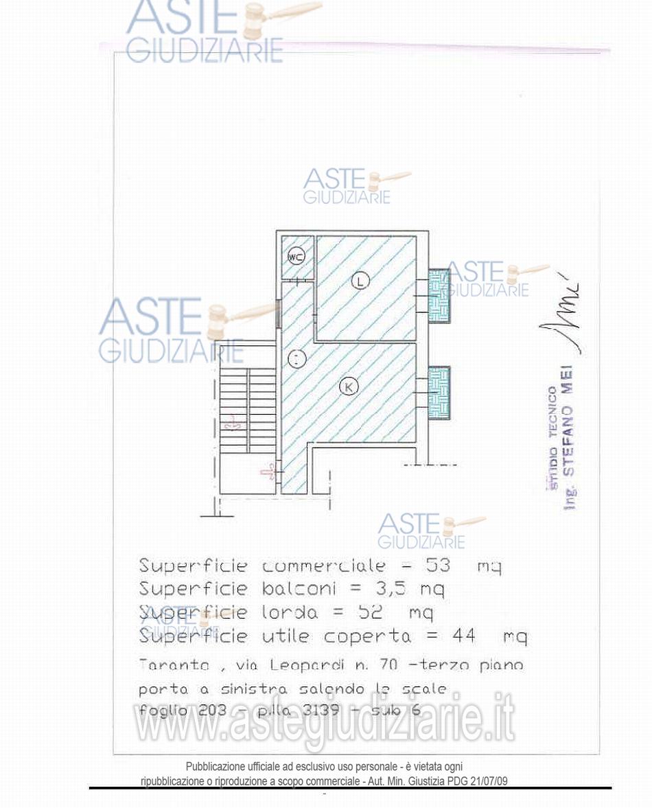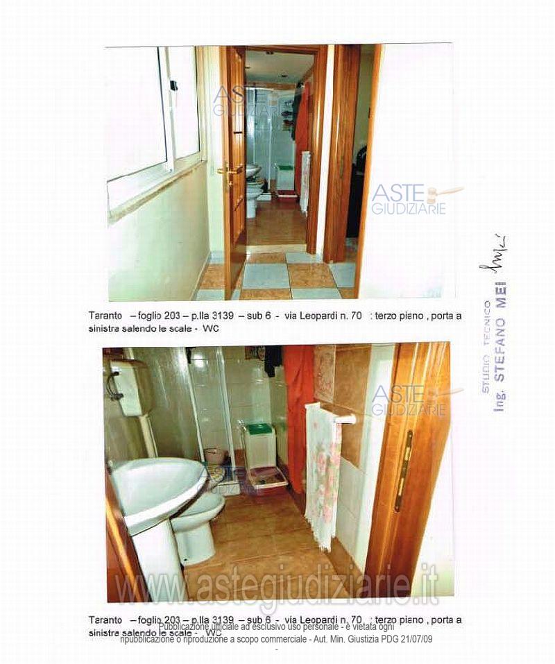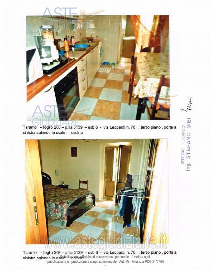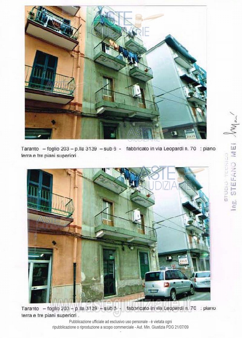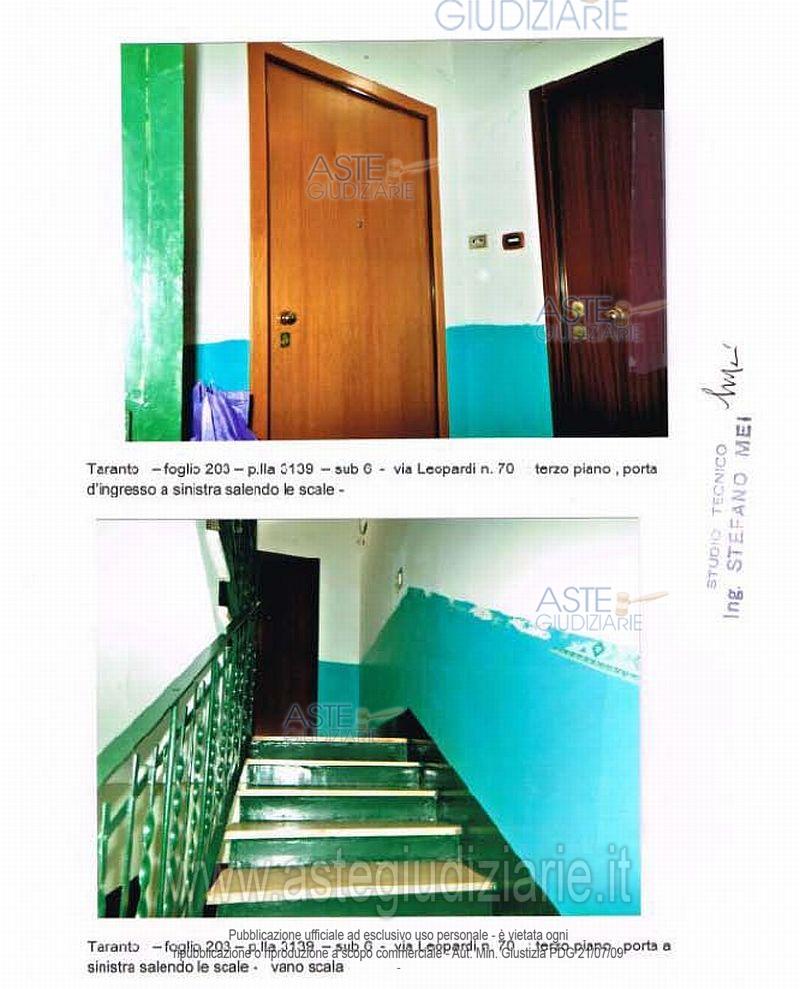 Vendita in attesa dell'emissione del nuovo bando d'asta. LOTTO 2: LOTTO B: Piena proprietà di appartamento posto al terzo piano. Ultimo prezzo base € 9.800,00 (offerta minima € 7.500,00). Giudice Francesca Zanna. Professionista delegato alla vendita Avv. Fabio Checchia. Custode Giudiziario Avv. Fabio Checchia - Email "fchecchia1971@gmail.com". Rif. Tribunale di Taranto - Esecuzione immobiliare post legge 80 n. 13/2012