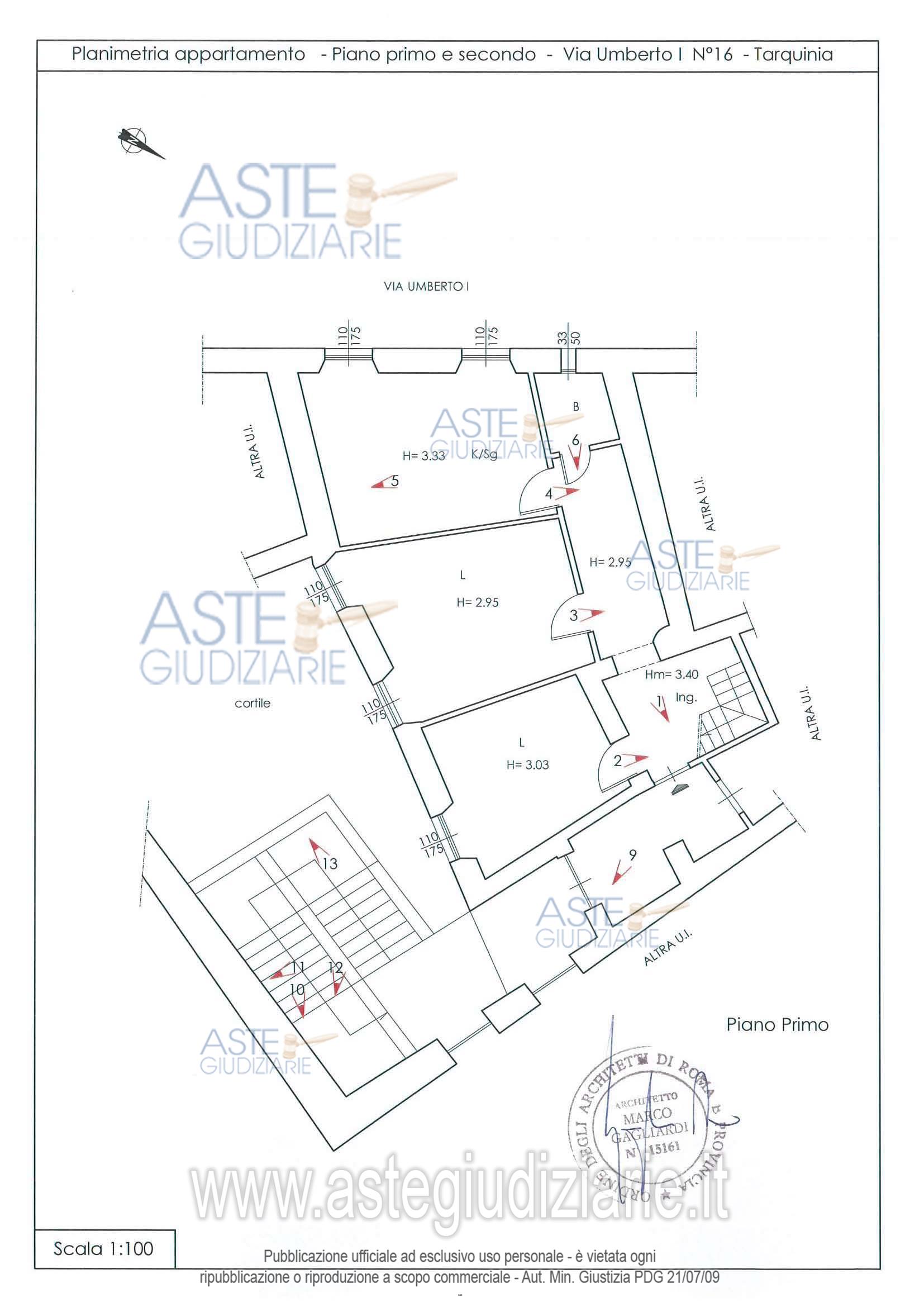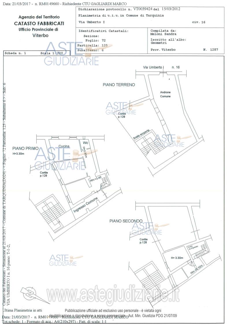 Vendita all'asta Senza incanto, con gara telematica asincrona - LOTTO 0: Appartamento articolato su due piani 1° e 2°, sito in Tarquinia in Via Umberto I 16, censito al N.C.E.U. del Comune di Tarquinia al foglio 72 part. 125 sub 6 graffata con la part. 126 sub 5 e part. 129 sub 15 categoria A/3 classe 2, Consistenza 5,5 vani, Rendita Catastale 533,90 €. Prezzo base € 108.750,00 (offerta minima € 81.562,50). Data inizio operazioni di vendita: 01/07/2026 ore 15:00. Giudice Dott. Stefano Palmaccio. Professionista delegato alla vendita Avv. Alessia Marchi - Email "avv.alessiamarchi@gmail.com"; Tel. 3275811323. Rif. Tribunale di Civitavecchia - Contenzioso civile n. 1486/2023