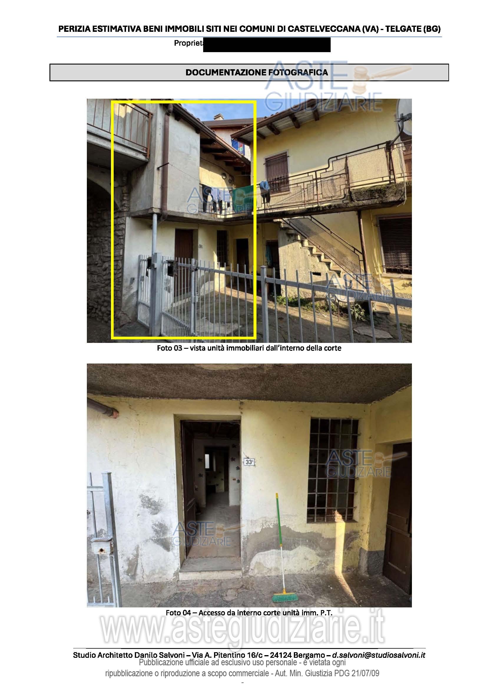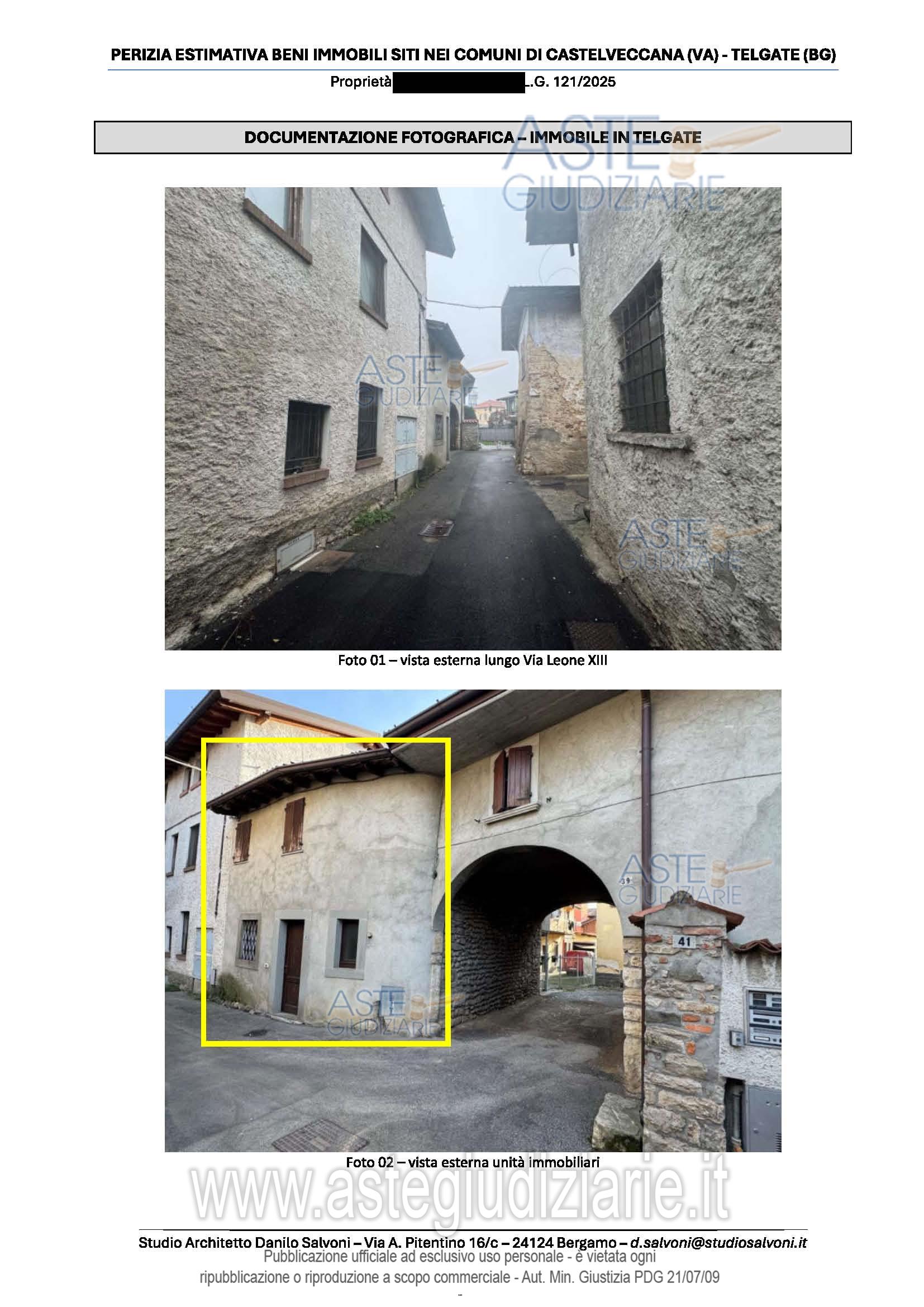Vendita all'asta Senza incanto, con gara telematica asincrona - LOTTO UNICO: piena proprietà di unità immobiliari a destinazione residenziale (con relativo terreno) in una corte di antica formazione all’interno del centro storico del comune di Telgate (BG); le unità immobiliari poste una a piano terra e una al piano primo versano in condizioni particolarmente precarie e necessitano di un intervento di integrale ristrutturazione. Prezzo base € 32.800,00 (offerta minima € 24.600,00). Data inizio operazioni di vendita: 18/06/2026 ore 12:00. Giudice: Vincenzo Domenico Scibetta.