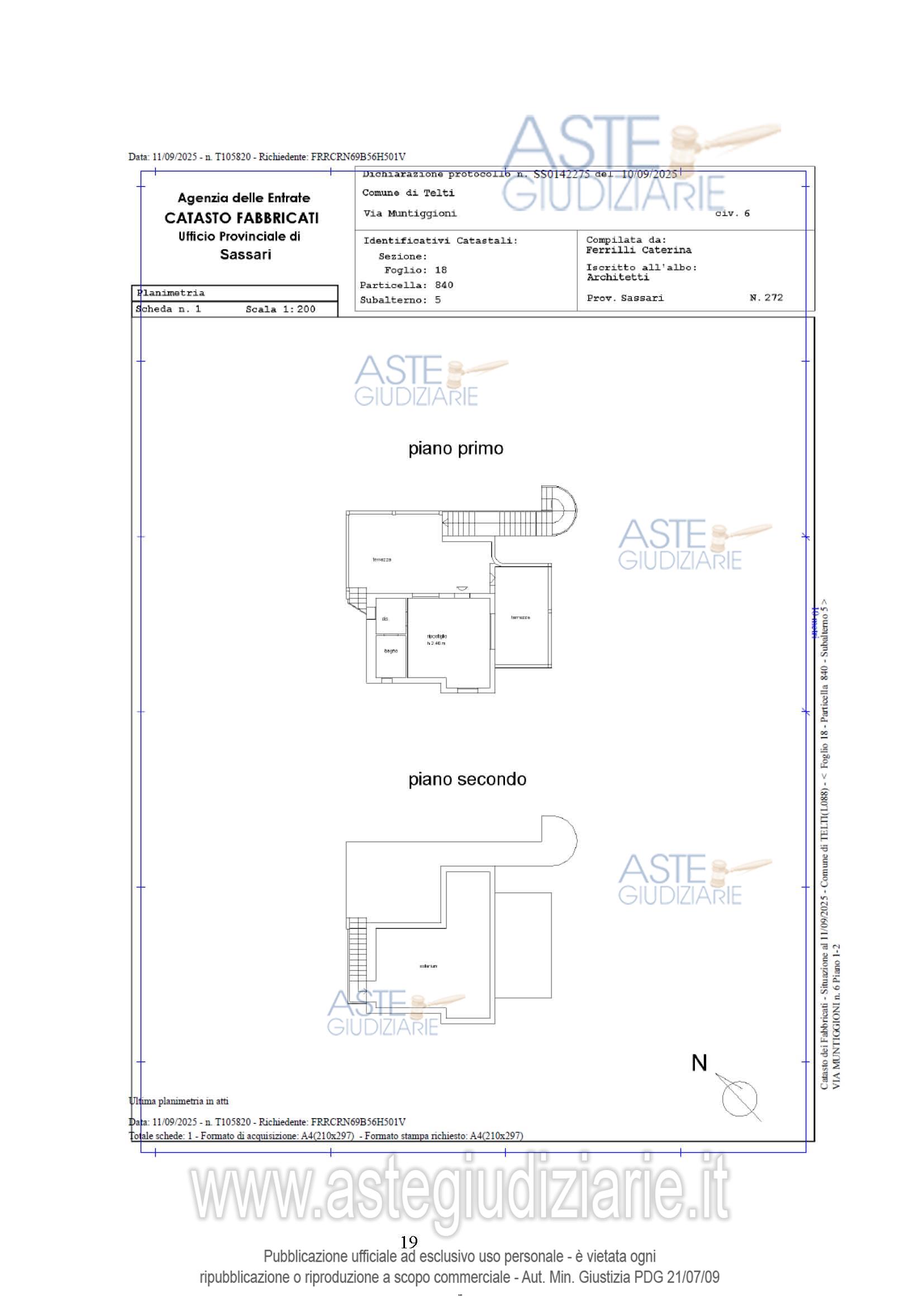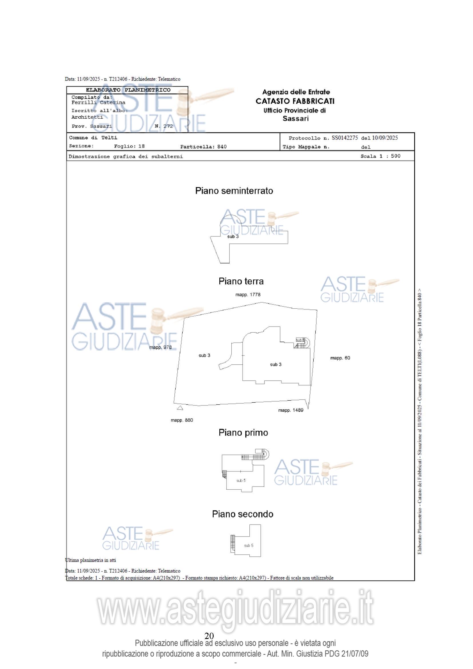 Vendita all'asta Senza incanto, con gara telematica asincrona - LOTTO UNICO: Piena proprietà dell'abitazione e del locale ripostiglio siti in Comune di Telti (SS), Via Muntiggioni 6, piano seminterrato, terra, primo, censiti al catasto fabbricati Foglio 18, part. 840, sub 3 (ex sub 1), cat. A/3, classe U, consistenza 9 vani, superficie catastale Totale: 296 mq Totale: escluse aree scoperte 262 mq, rendita catastale euro 511,29, e foglio 18, particella 840, sub 5 (ex sub 4, ex sub 2), cat. C/2, Classe U, Consistenza 34 mq, superficie catastale 50 mq, rendita euro 110,63,. Prezzo base € 880.425,00 (offerta minima € 660.318,75). Data inizio operazioni di vendita: 20/05/2026 ore 16:00. Giudice Antonia Palombella. Professionista delegato alla vendita Avv. Alessandro Accomando - Email "alessandro.accomando@gmail.com"; Tel. 079633133. Custode Giudiziario Ivg Tempio Pausania - Email "visite.ivgtempio@gmail.com"; Tel. 079630505. Rif. Tribunale di Tempio Pausania - Espropriazione immobiliare (cartabia) n. 127/2024