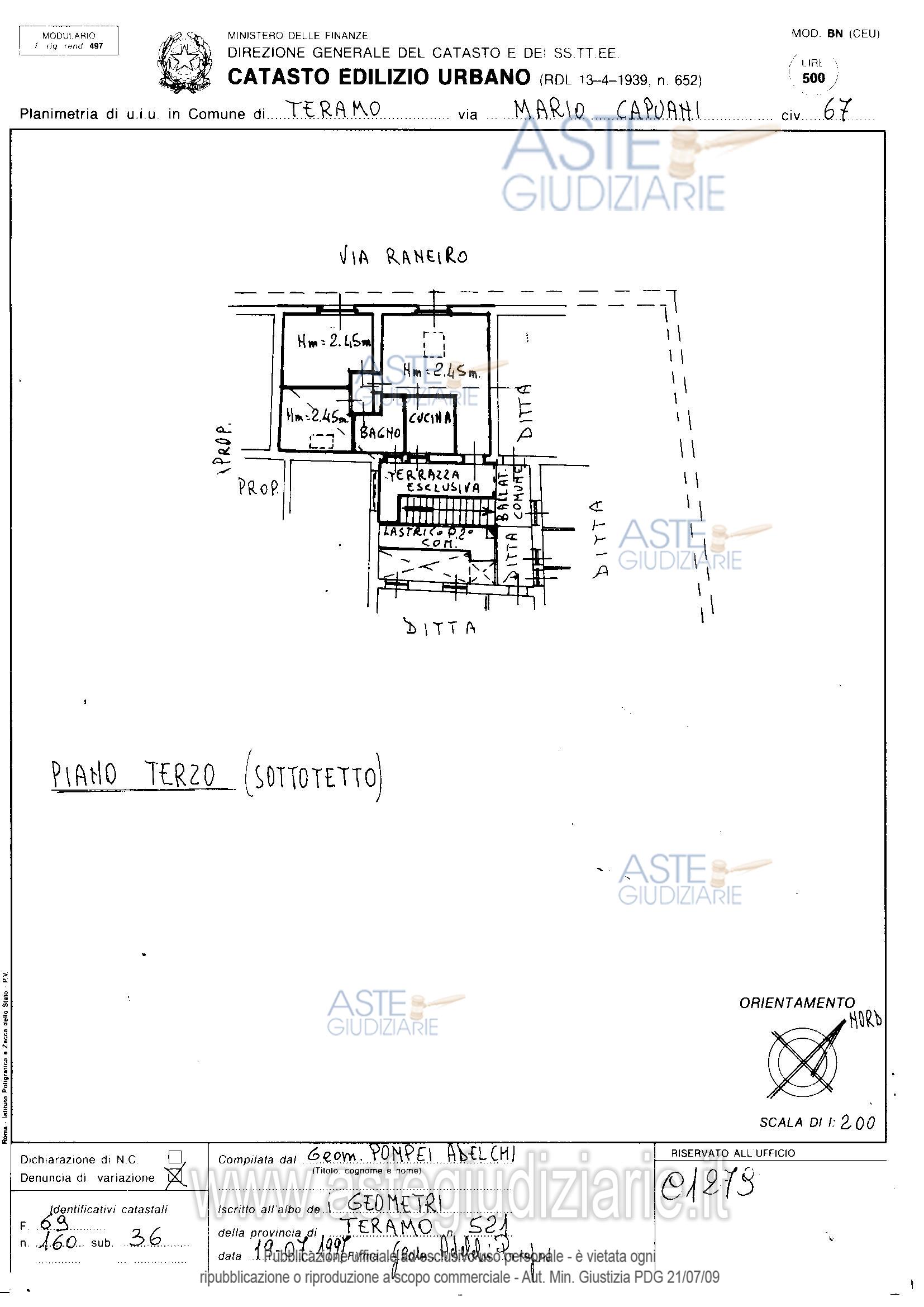 Vendita all'asta Senza incanto, con gara telematica asincrona - LOTTO 3: Diritti pari all'intero della piena proprietà su unità immobiliare, adibita a civile abitazione, posta al piano terzo/sottotetto di un fabbricato di maggiore consistenza a gestione condominiale, sito in pieno centro storico del Comune di Teramo alla via Capuani n.67.Nello specifico il compendio immobiliare in oggetto, della superficie complessiva pari a mq.57,70 circa, è costituito da un ingresso/soggiorno, cucina, bagno, camera da letto e stanza pluriuso. Prezzo base € 64.467,00 (offerta minima € 48.350,00). Data inizio operazioni di vendita: 16/10/2025 ore 16:30. Professionista delegato alla vendita Dott. Angelo Di Blasio - Email "studiodiblasio@virgilio.it"; Tel. 0861789411. Custode Giudiziario Dott. Angelo Di Blasio - Email "studiodiblasio@virgilio.it"; Tel. 0861789411. Rif. Tribunale di Teramo - Esecuzione immobiliare post legge 80 n. 21/2021