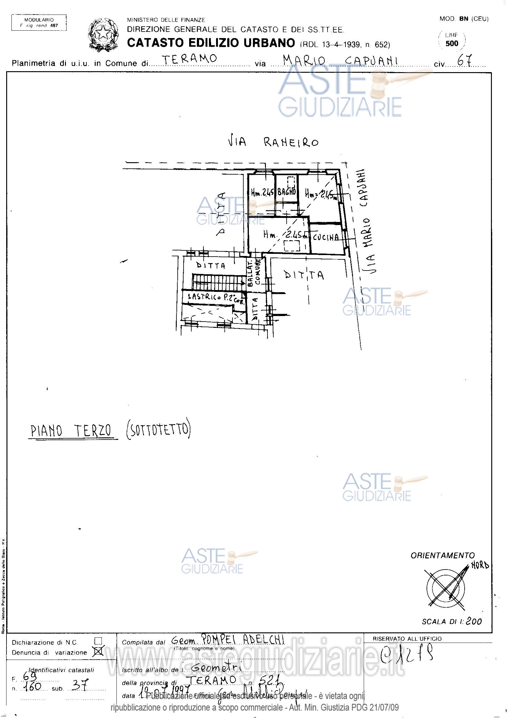Vendita all'asta Senza incanto, con gara telematica asincrona - LOTTO 4: Diritti pari all'intero della piena proprietà su unità immobiliare, adibita a civile abitazione, posta al piano terzo/sottotetto di un fabbricato di maggiore consistenza a gestione condominiale, sito in pieno centro storico del Comune di Teramo alla via Capuani n.67.Nello specifico il compendio immobiliare della superficie complessiva pari a mq.69,50 circa, è costituito da un ingresso/soggiorno, cucina, bagno, camera da letto, stanza pluriuso e terrazzo esterno ad uso esclusivo. Prezzo base € 51.930,00 (offerta minima € 38.948,00). Data inizio operazioni di vendita: 16/10/2025 ore 16:30. Professionista delegato alla vendita Dott. Angelo Di Blasio - Email "studiodiblasio@virgilio.it"; Tel. 0861789411. Custode Giudiziario Dott. Angelo Di Blasio - Email "studiodiblasio@virgilio.it"; Tel. 0861789411. Rif. Tribunale di Teramo - Esecuzione immobiliare post legge 80 n. 21/2021