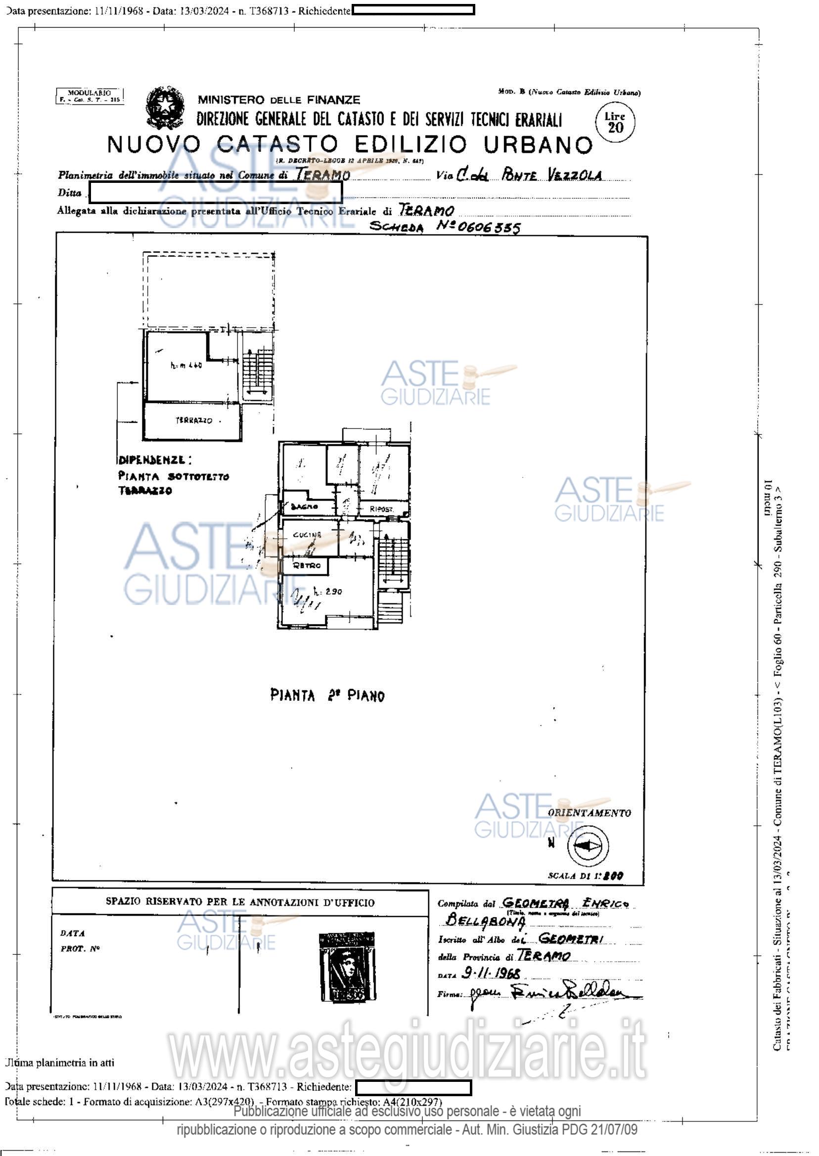 Vendita all'asta Senza incanto, con gara telematica asincrona - LOTTO 1: diritti pari alla piena proprietà di porzione immobiliare sita nel Comune di Teramo, contrada Castagneto e precisamente appartamento posto ai piani secondo e terzo, composto da 6,5 vani distinto e meglio identificato al Catasto Fabbricati - Fg. 60, Part. 290, Sub. 3, Categoria A3 ed al catasto Terreni - Fg. 60, Part. 290, Qualità Ente Urbano. Destinazione urbanistica: Nel P.R.G. Vigente del Comune di Teramo ricade in Zona B13 (ART. VII.4 - ZONE B11, B12, B13 - ZONE EDIFICATE SATURE IN AREA URBANA). Prezzo base € 32.484,37 (offerta minima € 24.363,28). Data inizio operazioni di vendita: 16/07/2026 ore 16:00. Professionista delegato alla vendita: Avv. Sara Poltrone - Email "sarapoltrone@yahoo.it"; Cell. 347/0307211.