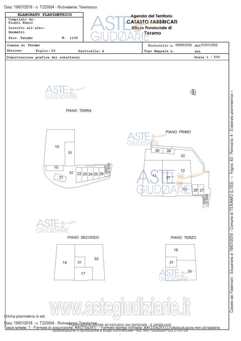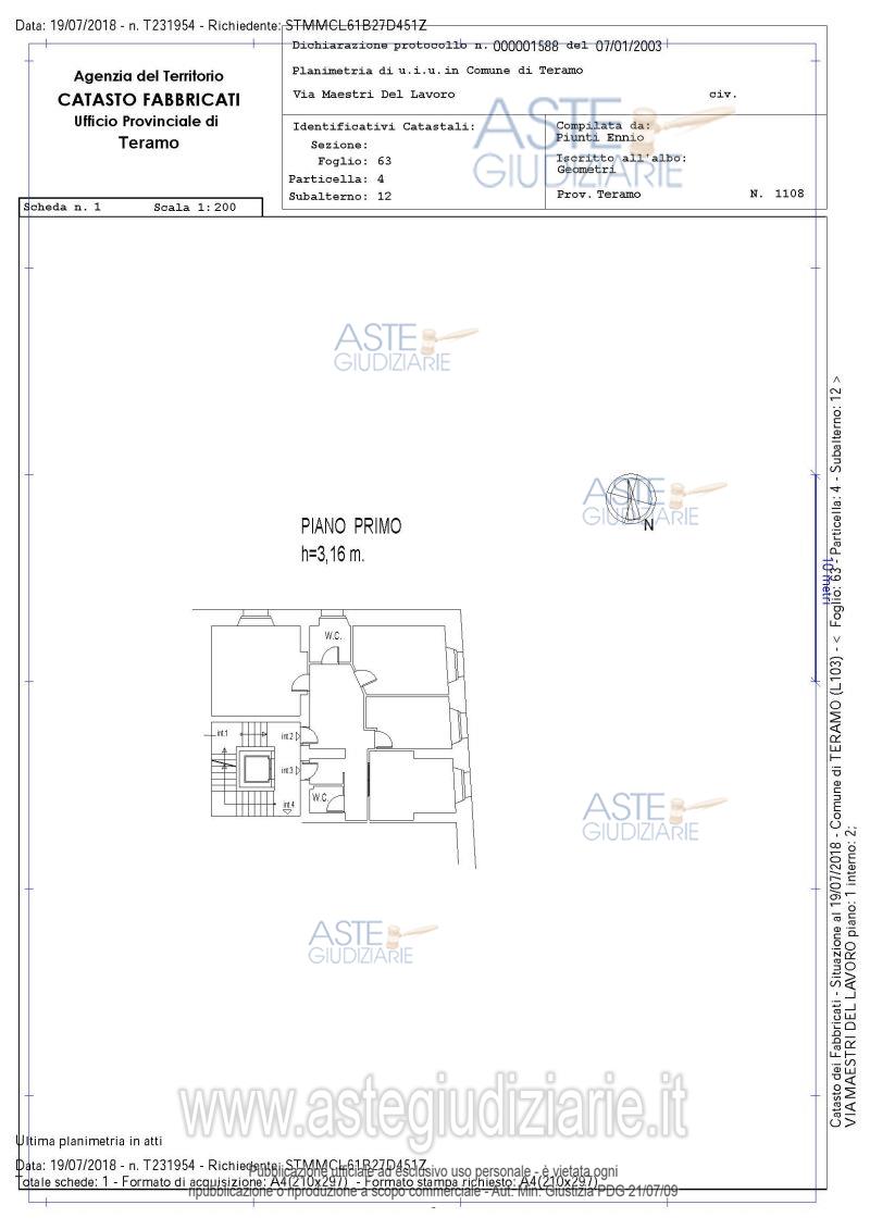 Vendita all'asta Senza incanto, con gara telematica asincrona - LOTTO 1: Diritti di piena proprietà su porzione di fabbricato sito in Teramo (TE), Via G. A. Campano n. 3 piano primo interno 2. L’appartamento è composto da ingresso, soggiorno/pranzo, cucina, 2 camere da letto, 2 bagni e ripostiglio, il tutto per una superficie commerciale lorda di mq. 103,80. Prezzo base € 67.218,75 (offerta minima € 50.414,07). Data inizio operazioni di vendita: 17/12/2025 ore 10:30. Professionista delegato alla vendita Dott. Lorena Branciaroli - Email "lorenabranciaroli@gmail.com"; Tel. 0858007412. Custode Giudiziario Dott. Lorena Branciaroli - Email "lorenabranciaroli@gmail.com"; Tel. 0858007412. Rif. Tribunale di Teramo - Esecuzione immobiliare post legge 80 n. 394/2014