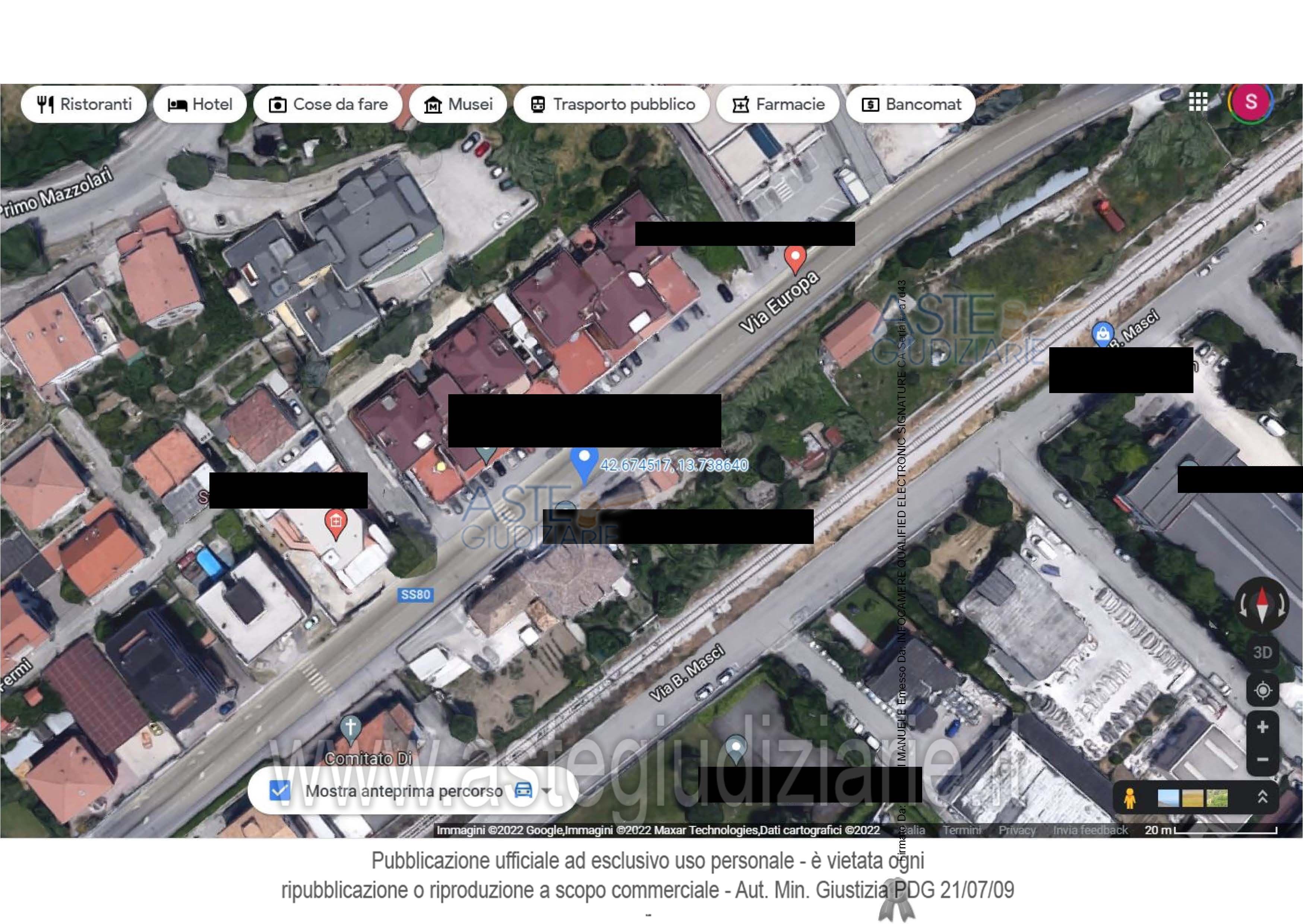 Vendita all'asta Senza incanto, con gara telematica asincrona - LOTTO UNICO: Fabbricato civile ubicato a Teramo (TE) - Viale Europa, 42, piano S1-T. L’immobile, sito lungo la S.S.80.Nello specifico, la porzione di fabbricato è composta, al piano terra quota strada, di un ingresso,bagno e tre camere da letto un'altezza di 2,70 ml.; una scala interna permette di accedere al pianoseminterrato sotto strada in cui sono presenti una camera da letto, bagno, un soggiorno ed una cucina. Prezzo base € 63.750,00 (offerta minima € 47.813,00). Data inizio operazioni di vendita: 24/04/2026 ore 15:00. Giudice Dott. Ninetta D'ignazio. Professionista delegato alla vendita Avv. Francesco Sibio - Email "avv.francescosibio@virgilio.it"; Cell. 3398075020; Tel. 0861681543. Custode Giudiziario Avv. Francesco Sibio - Email "avv.francescosibio@virgilio.it"; Cell. 3398075020; Tel. 0861681543. Rif. Tribunale di Teramo - Esecuzione immobiliare post legge 80 n. 57/2020
