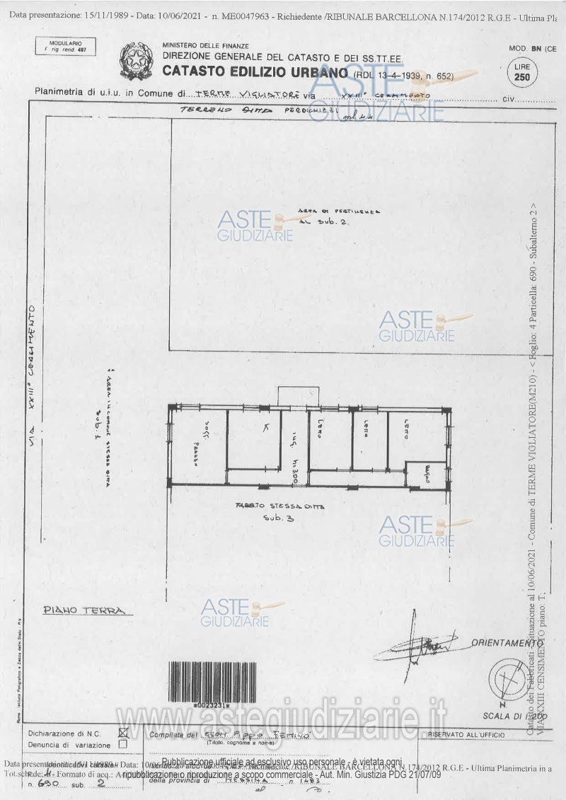 Vendita all'asta Senza incanto, con gara telematica sincrona - LOTTO 2: Immobile sito nel Comune di Terme Vigliatore (ME), con accesso via Boccaccio n°61. Prezzo base € 12.400,00 (offerta minima € 9.300,00). Data vendita 06/02/2026 ore 17:00. Giudice Giuseppe Lo Presti. Professionista delegato alla vendita Avv. Alessandro Campo - Email "avv.alessandro.campo@gmail.com". Custode Giudiziario Avv. Alessandro Campo - Email "avv.alessandro.campo@gmail.com"; Tel. 0909410307. Rif. Tribunale di Barcellona Pozzo di Gotto - Esecuzione immobiliare post legge 80 n. 174/2012