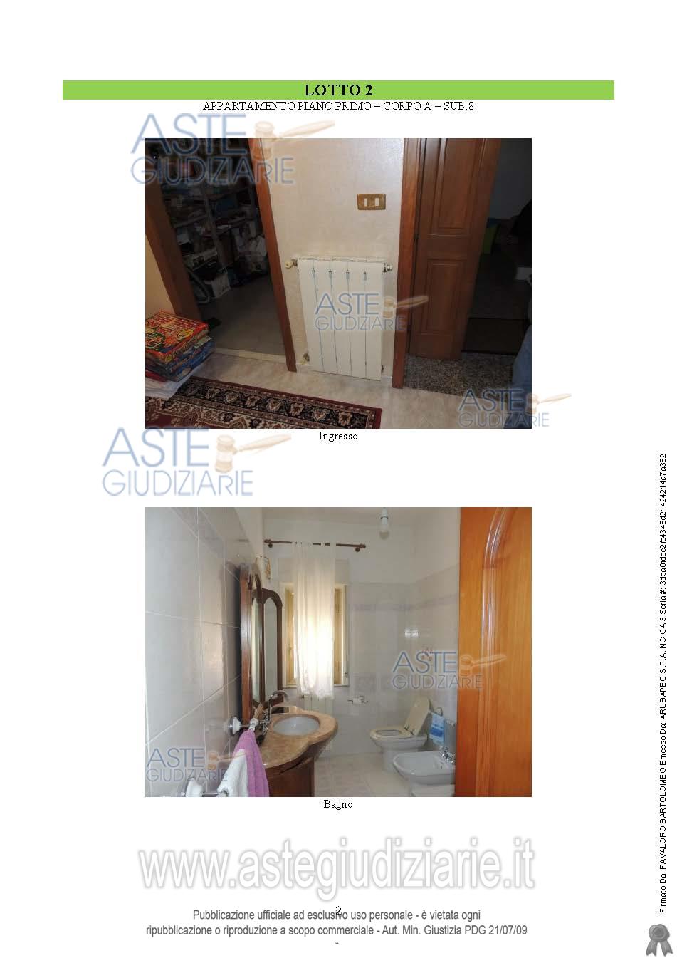 Vendita all'asta Senza incanto, con gara telematica sincrona - LOTTO 2: Quota di 1/4 del diritto di proprietà dell'appartamento a piano primo con balcone nel quale è ricavata una lavanderia, della superficie commerciale di 145,75 mq. Al N.C.E.U. al fg. 5, part. 1570, sub 8, cat. A/2, classe 4. Prezzo base € 2.885,63 (offerta minima € 2.164,22). Data vendita 19/06/2026 ore 17:30. Giudice: Dott. Giuseppe Lo Presti.