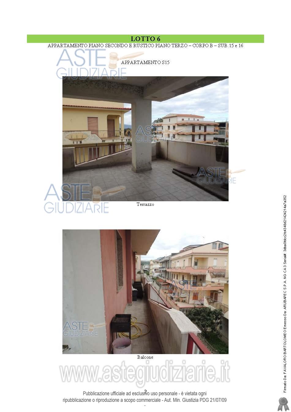 Vendita all'asta Senza incanto, con gara telematica sincrona - LOTTO 6: Quota di 1/4 del diritto di proprietà dell'appartamento al piano secondo con balcone e terrazzo, della superficie commerciale di 156,36 mq., e dell'immobile allo stato rustico al piano terzo con balcone, della superficie commerciale di 34,94 mq. Al N.C.E.U. l'appartamento al fg. 5, part. 1570, sub 15, cat. A/2, classe 4 e l'immobile rustico al fg. 5, part. 1570, sub 16, cat. F/3. Prezzo base € 7.233,75 (offerta minima € 5.425,31). Data vendita 19/06/2026 ore 17:30. Giudice: Dott. Giuseppe Lo Presti.